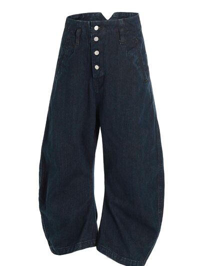 Men's Washed Button Fly Curved Jeans