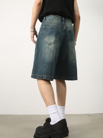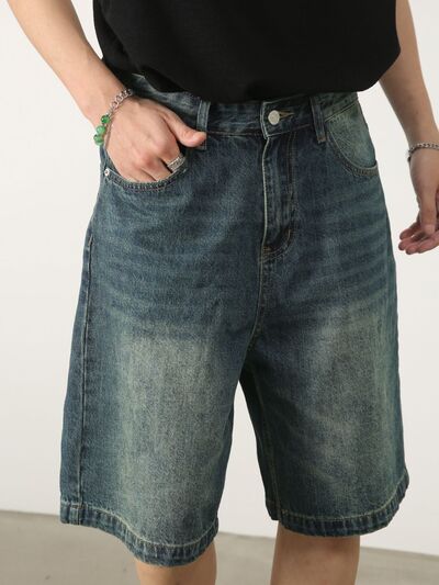 Men's Washed Denim Shorts with Pockets