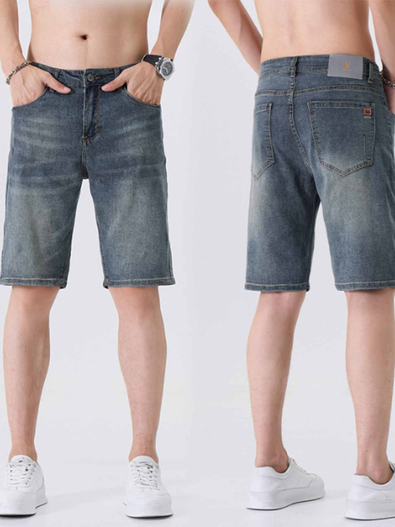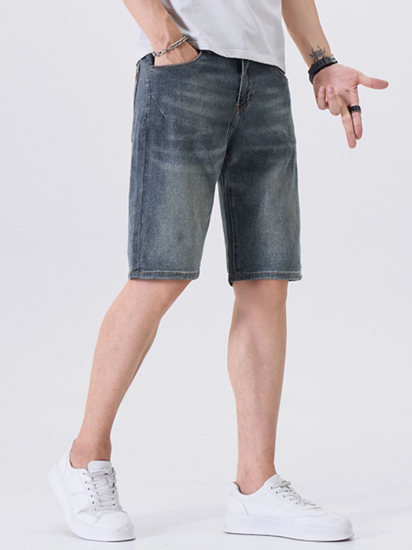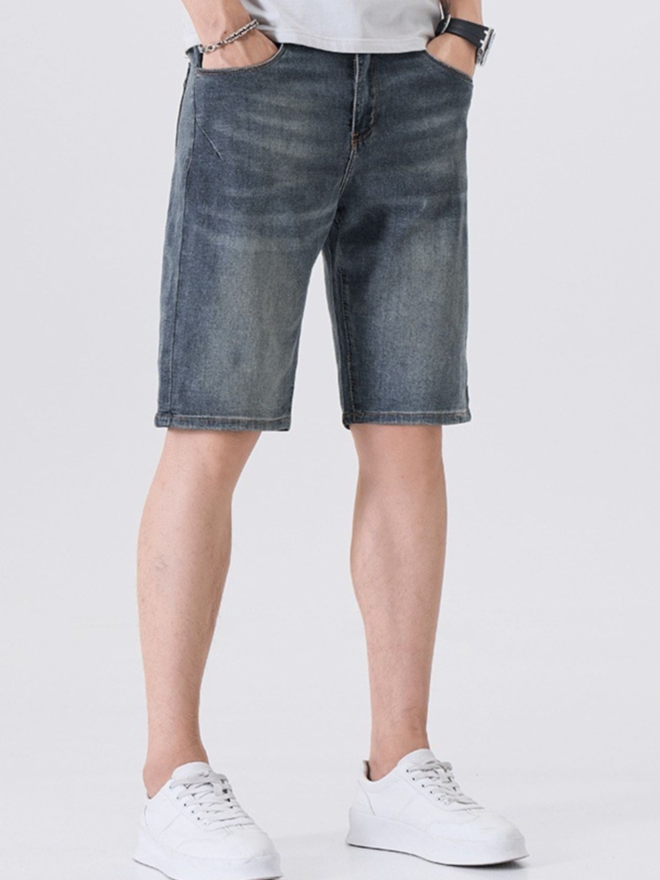 Men's Washed Denim Shorts with Pockets