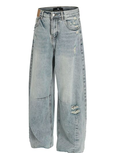 Men's Washed Distressed Curved Jeans