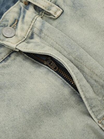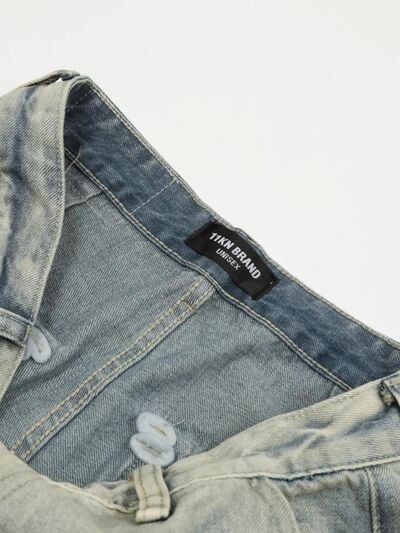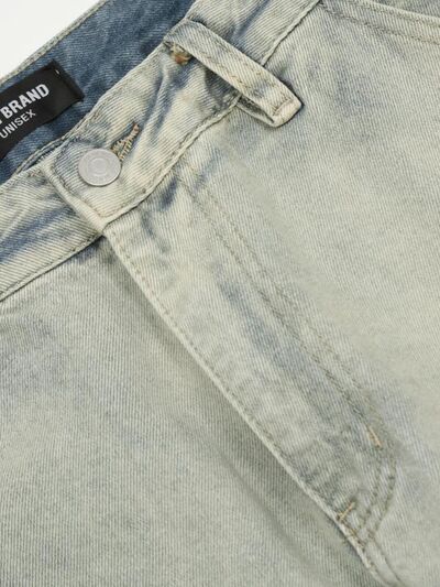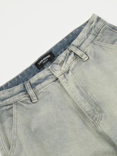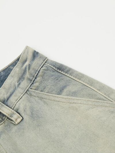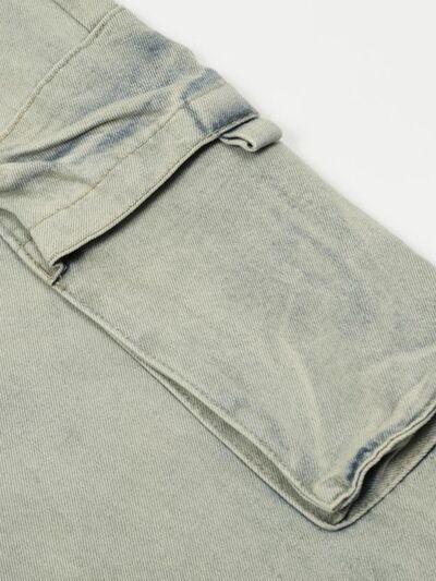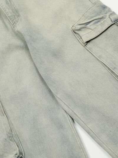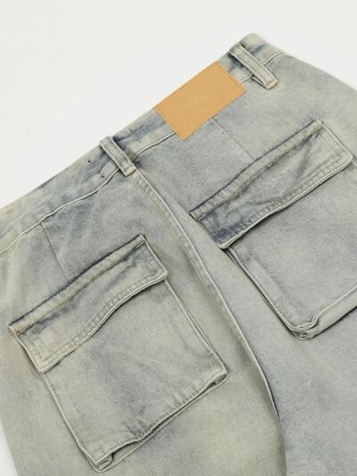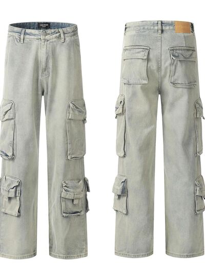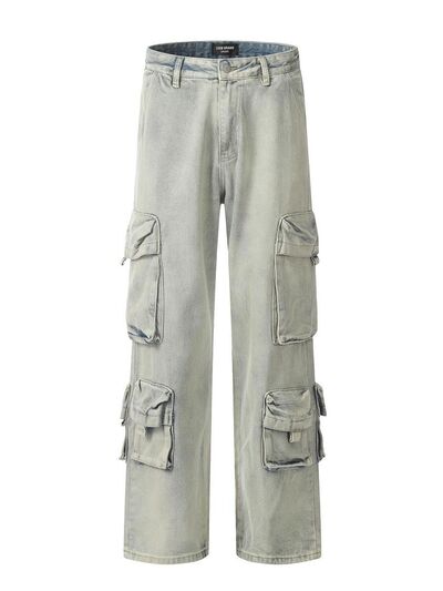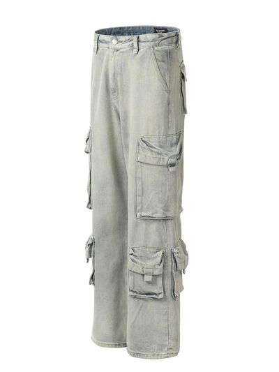 Men's Washed Multi-Pocket Straight Cargo Jeans