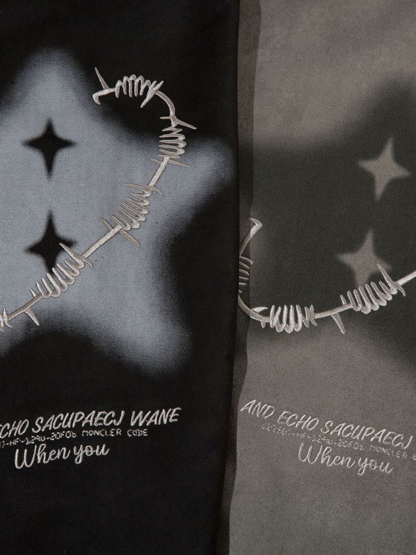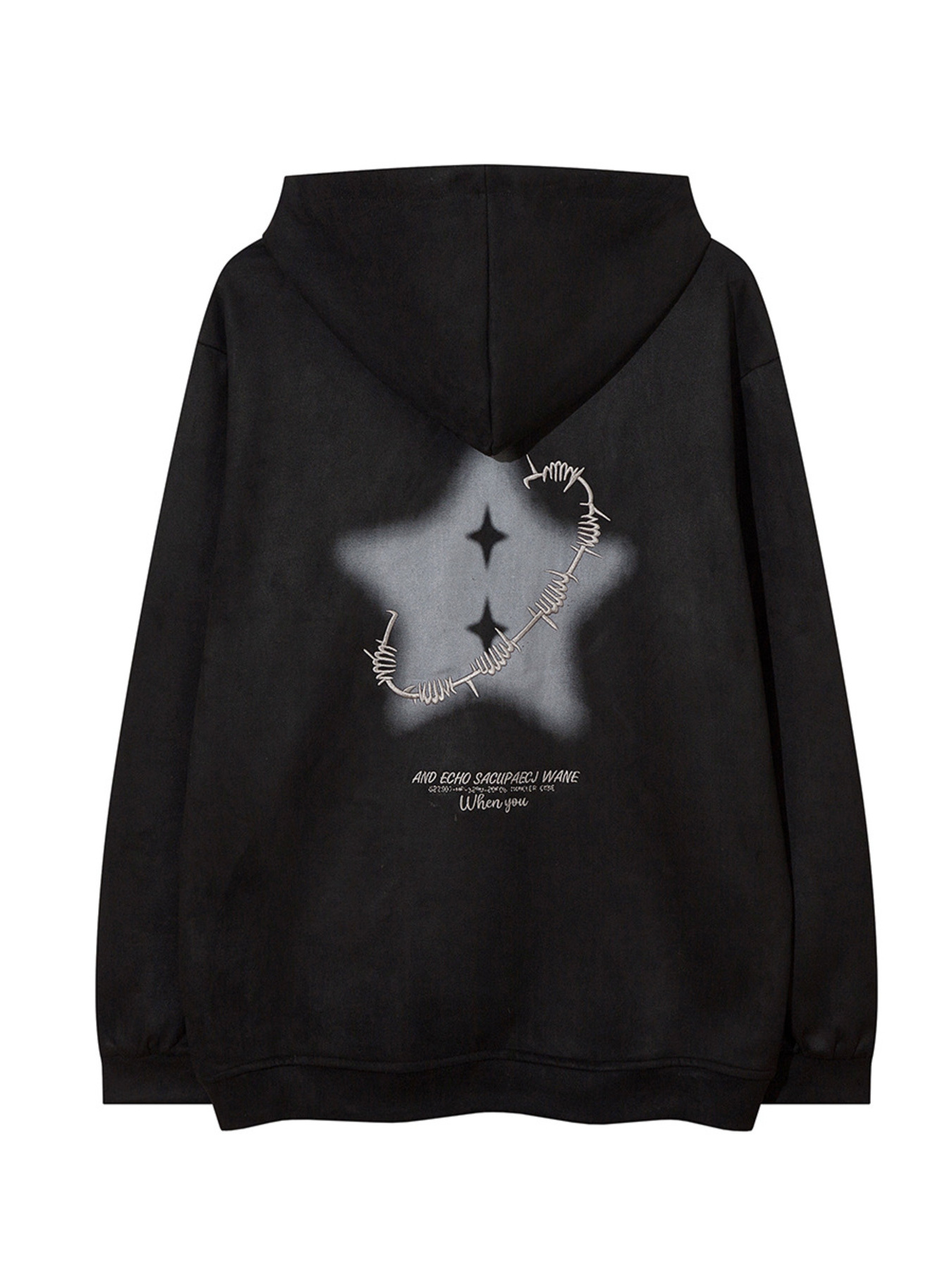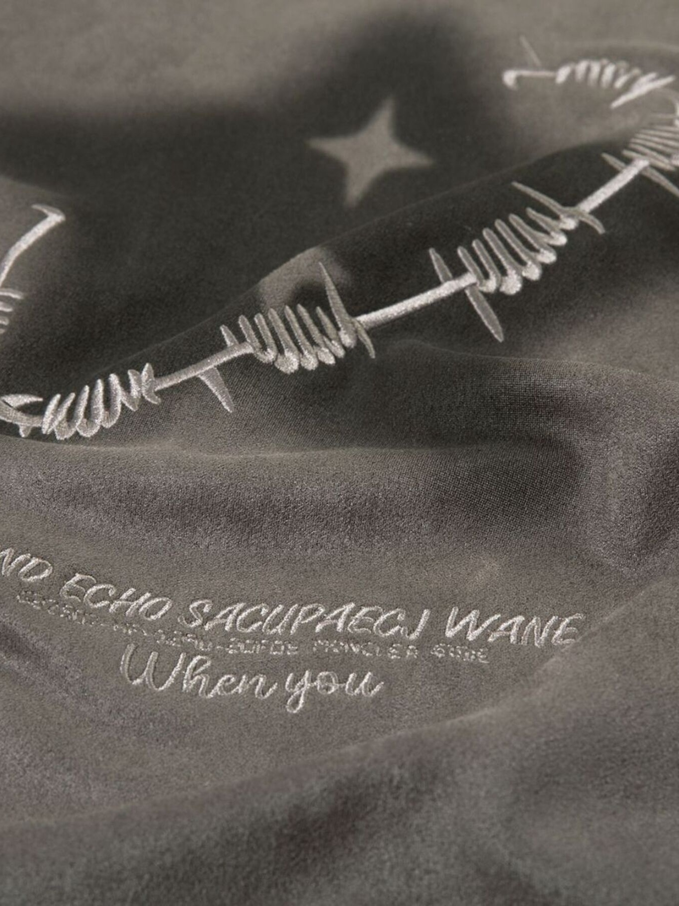 Men's Washed Oversized Hoodie with Embroidered Detail