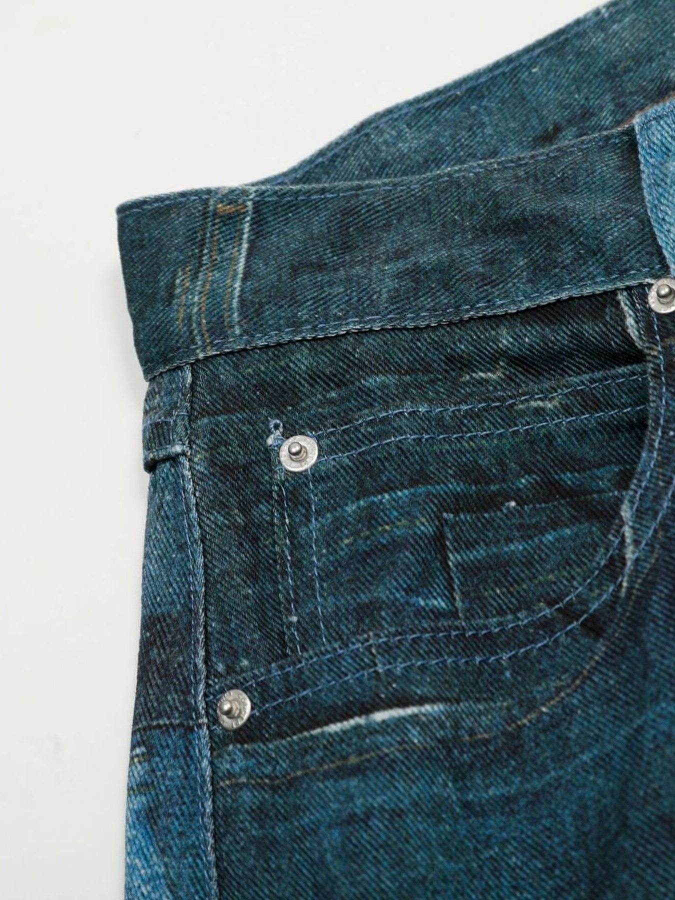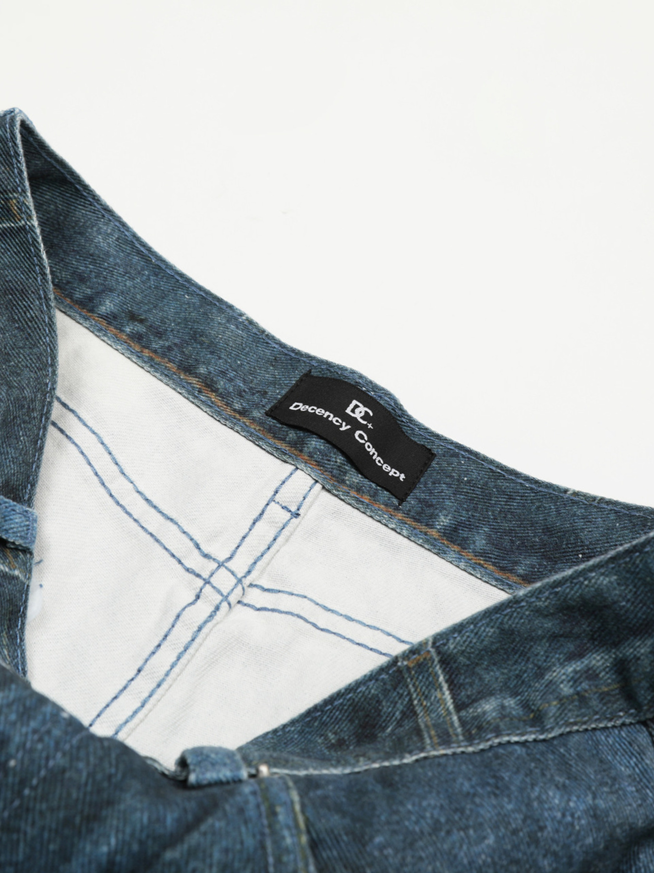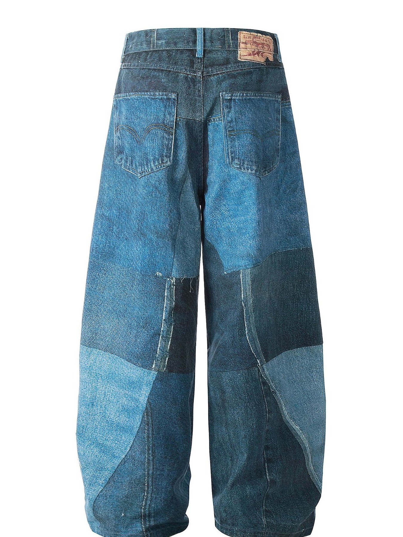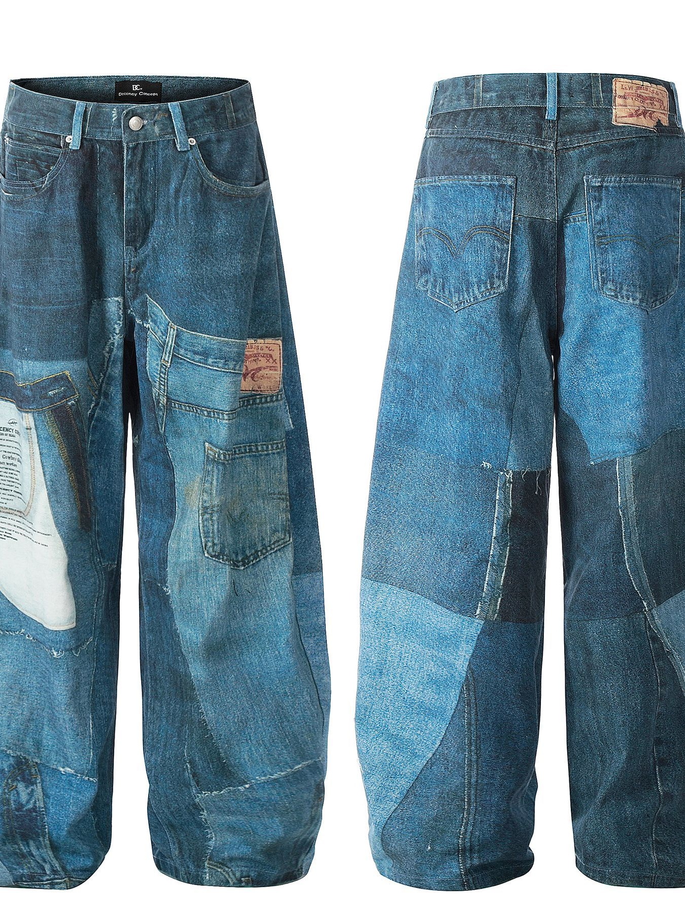 Men's Washed Patchwork Wide Leg Curved Jeans