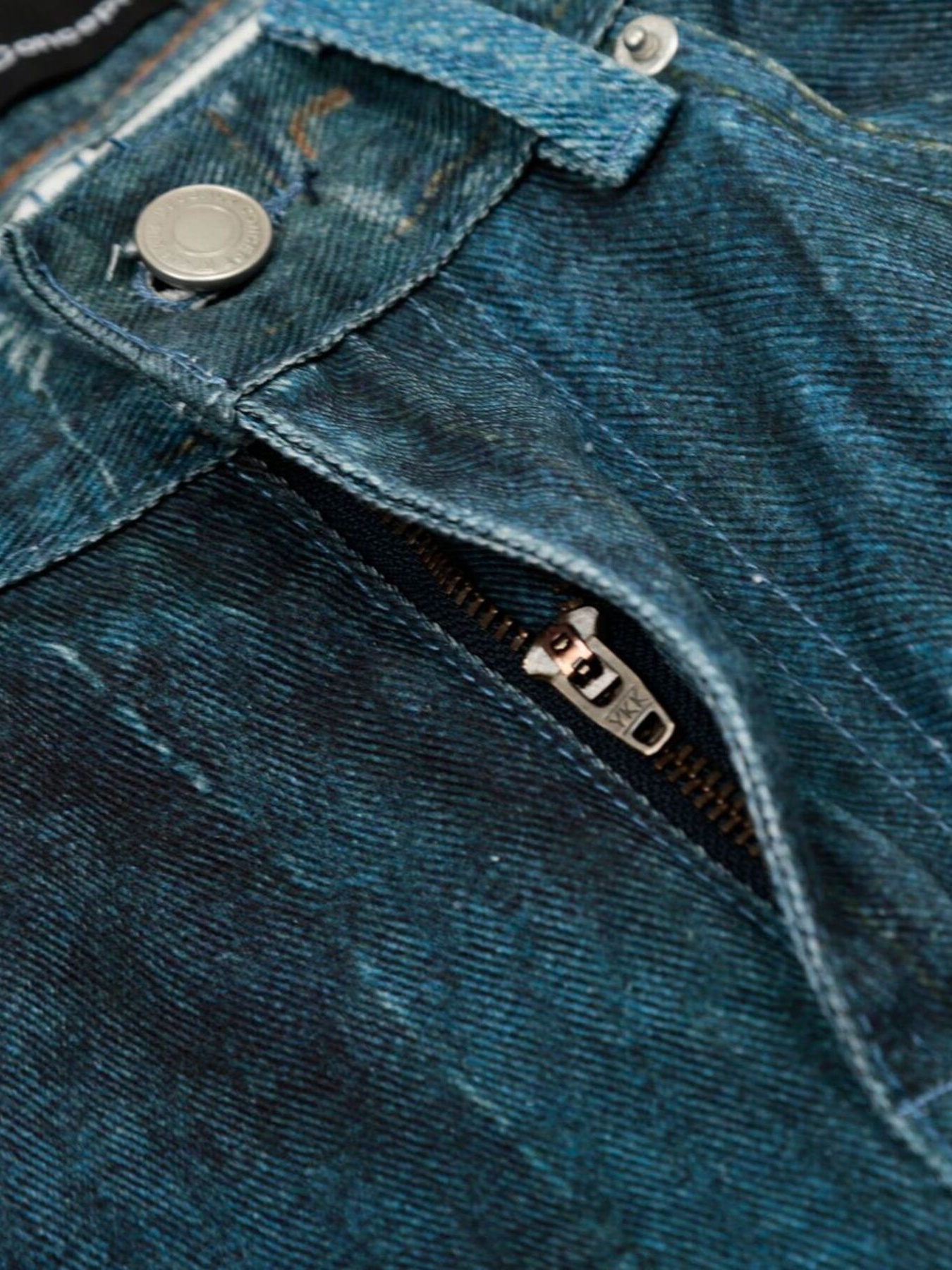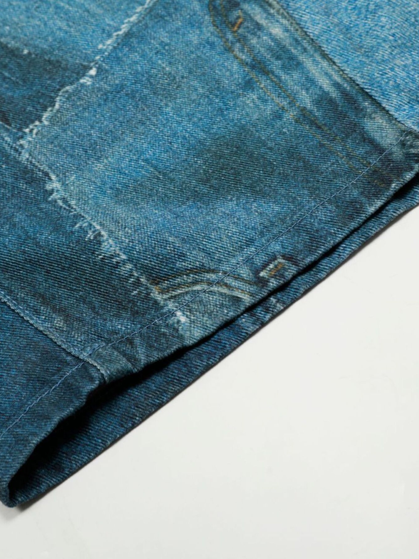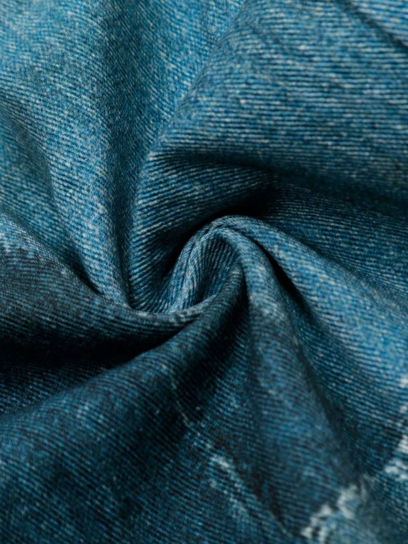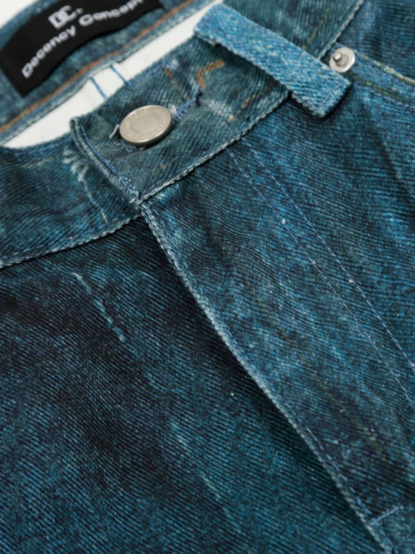 Men's Washed Patchwork Wide Leg Curved Jeans