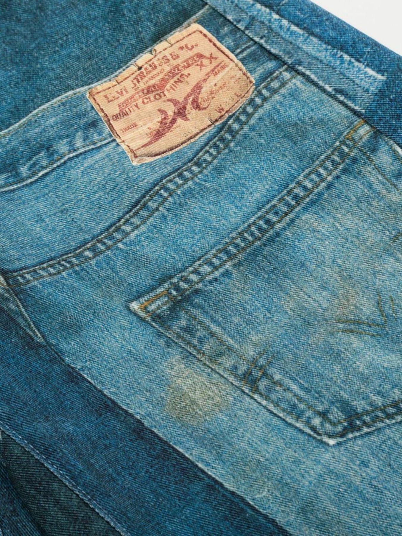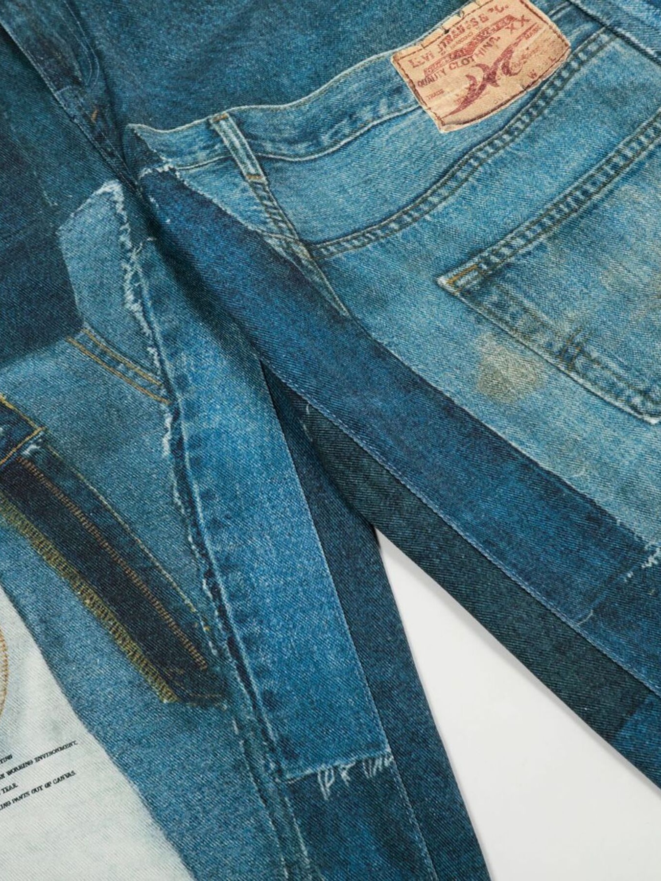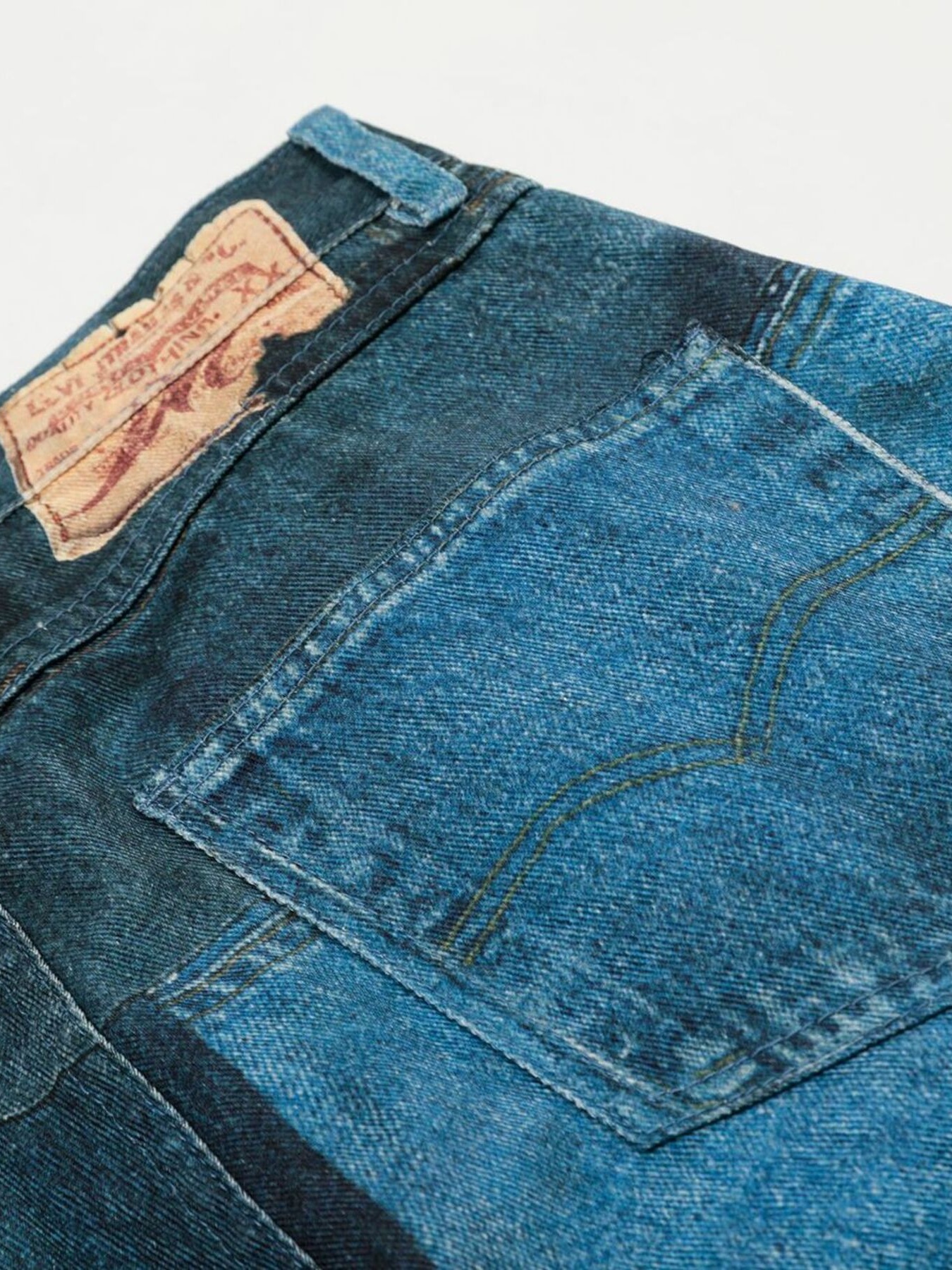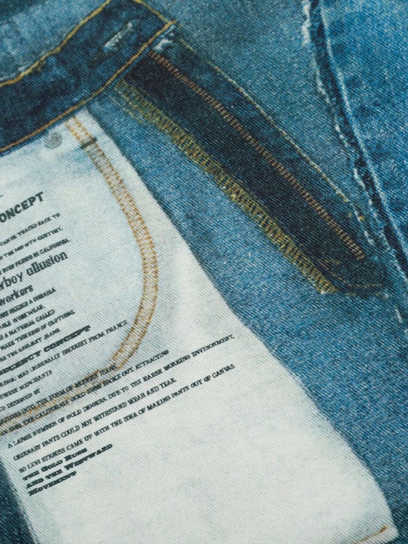 Men's Washed Patchwork Wide Leg Curved Jeans