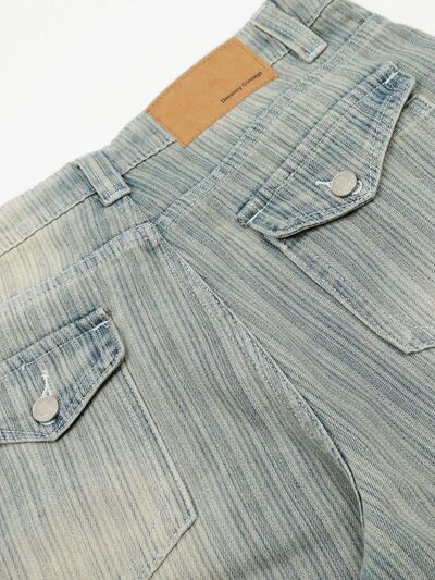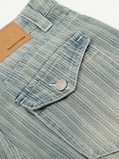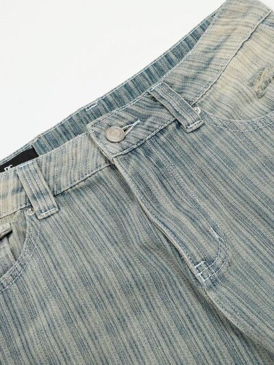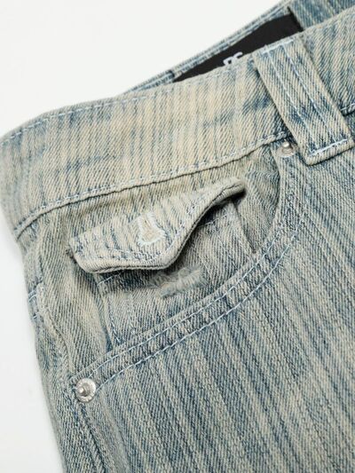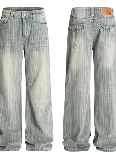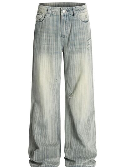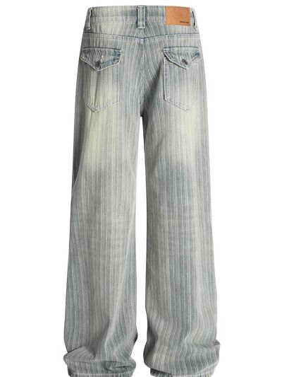 Men's Washed Pinstripe Wide Leg Jeans