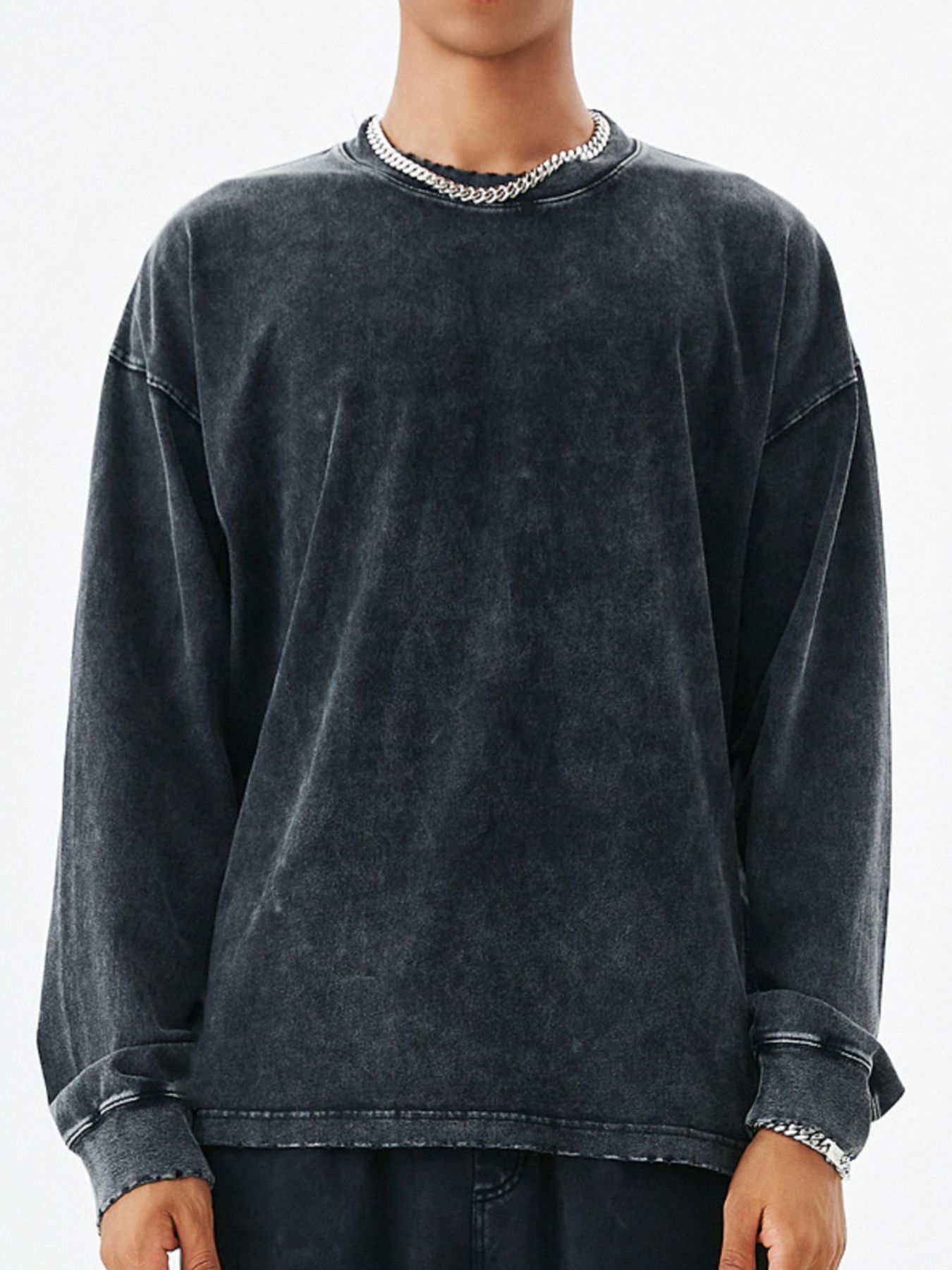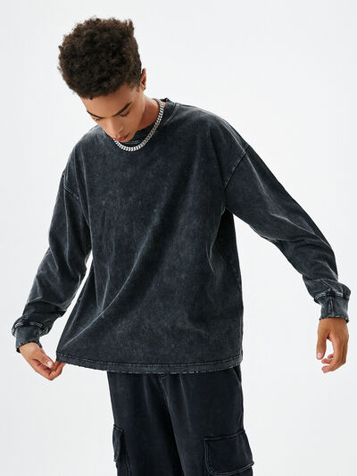 Men's Washed Round Neck Dropped Shoulder Sweatshirt