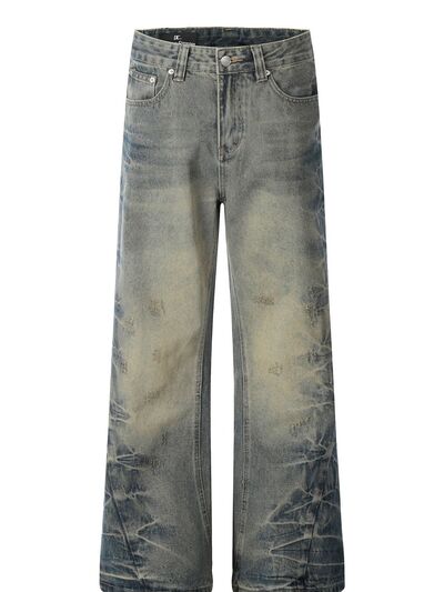 Men's Washed Wide-Leg Jeans