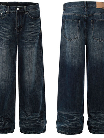 Men's Washed Wide-Leg Jeans