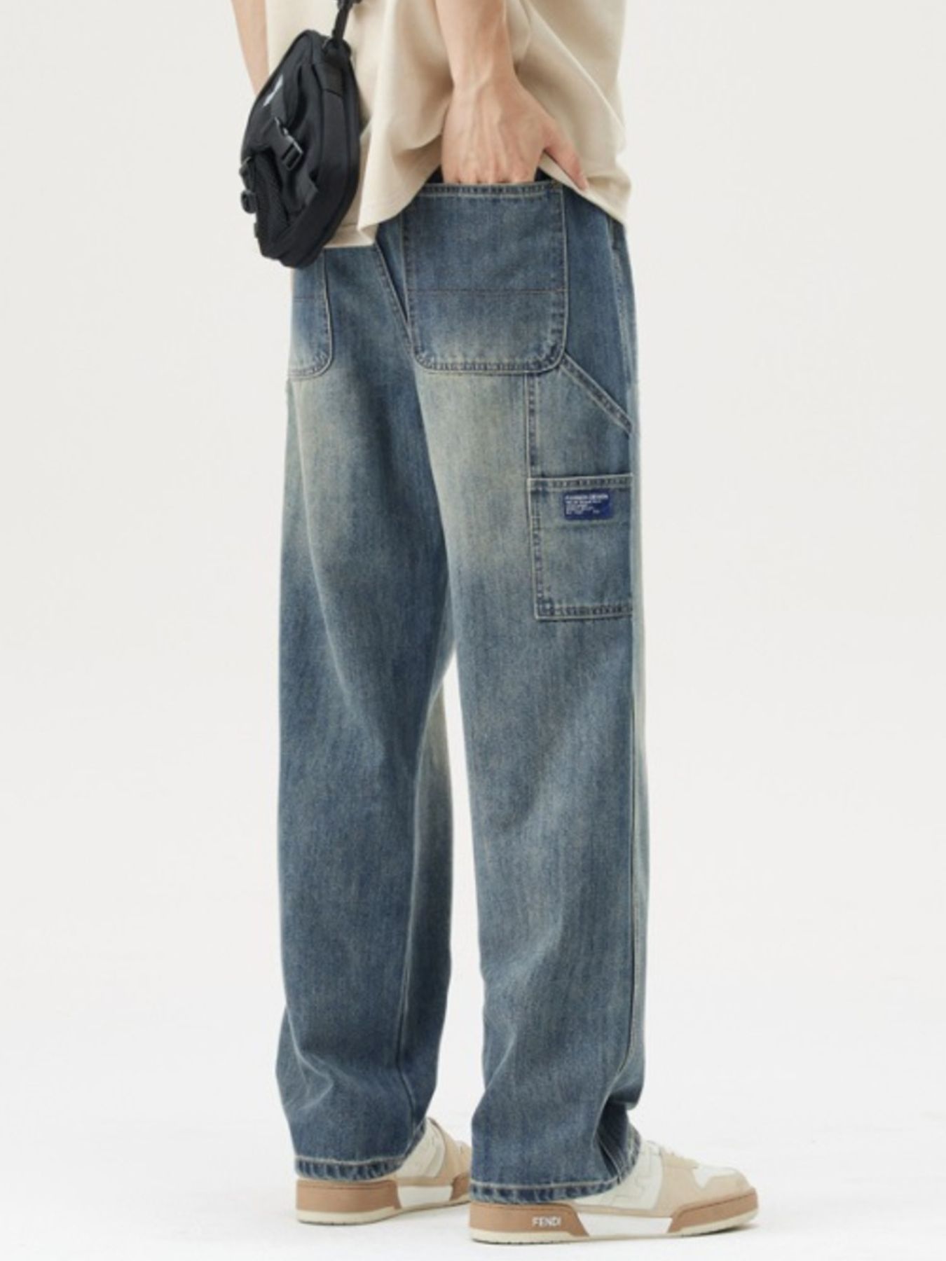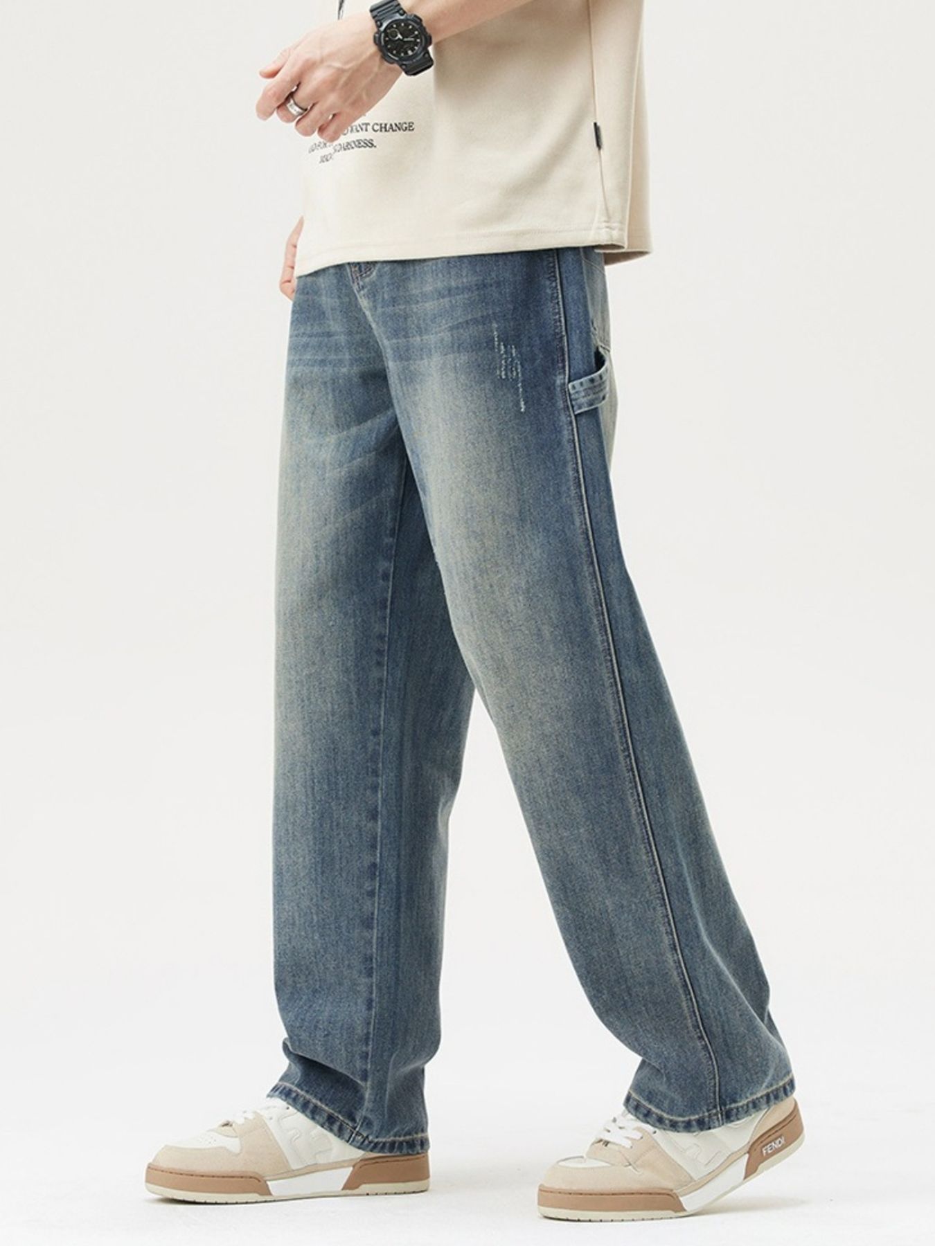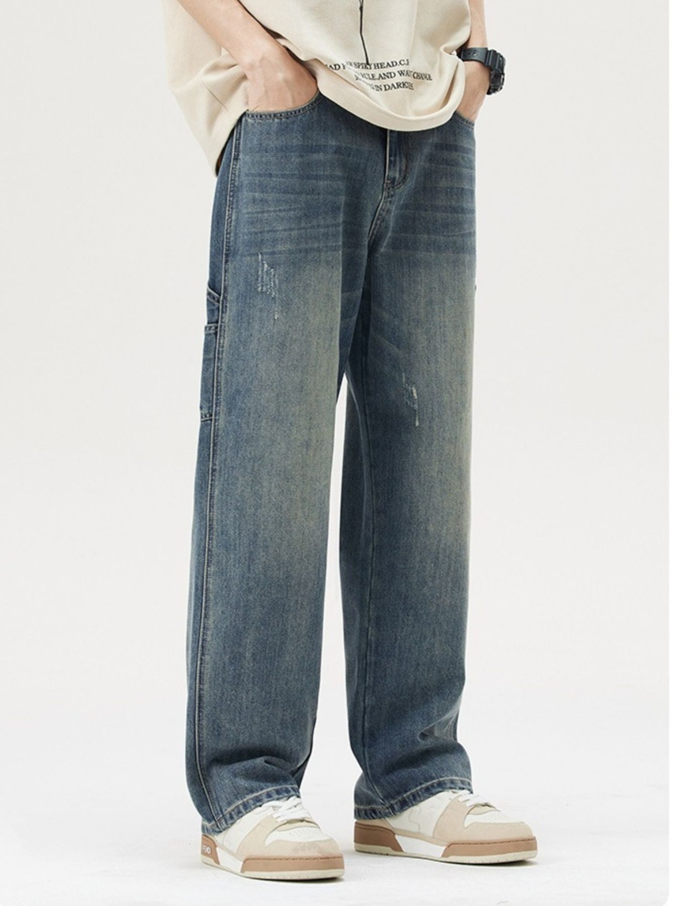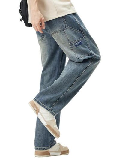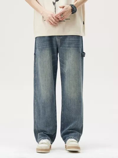 Men's Washed Wide Leg Jeans