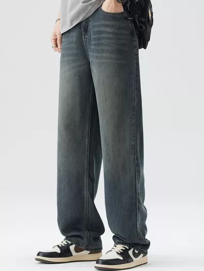 Men's Washed Wide Leg Relaxed Fit Jeans