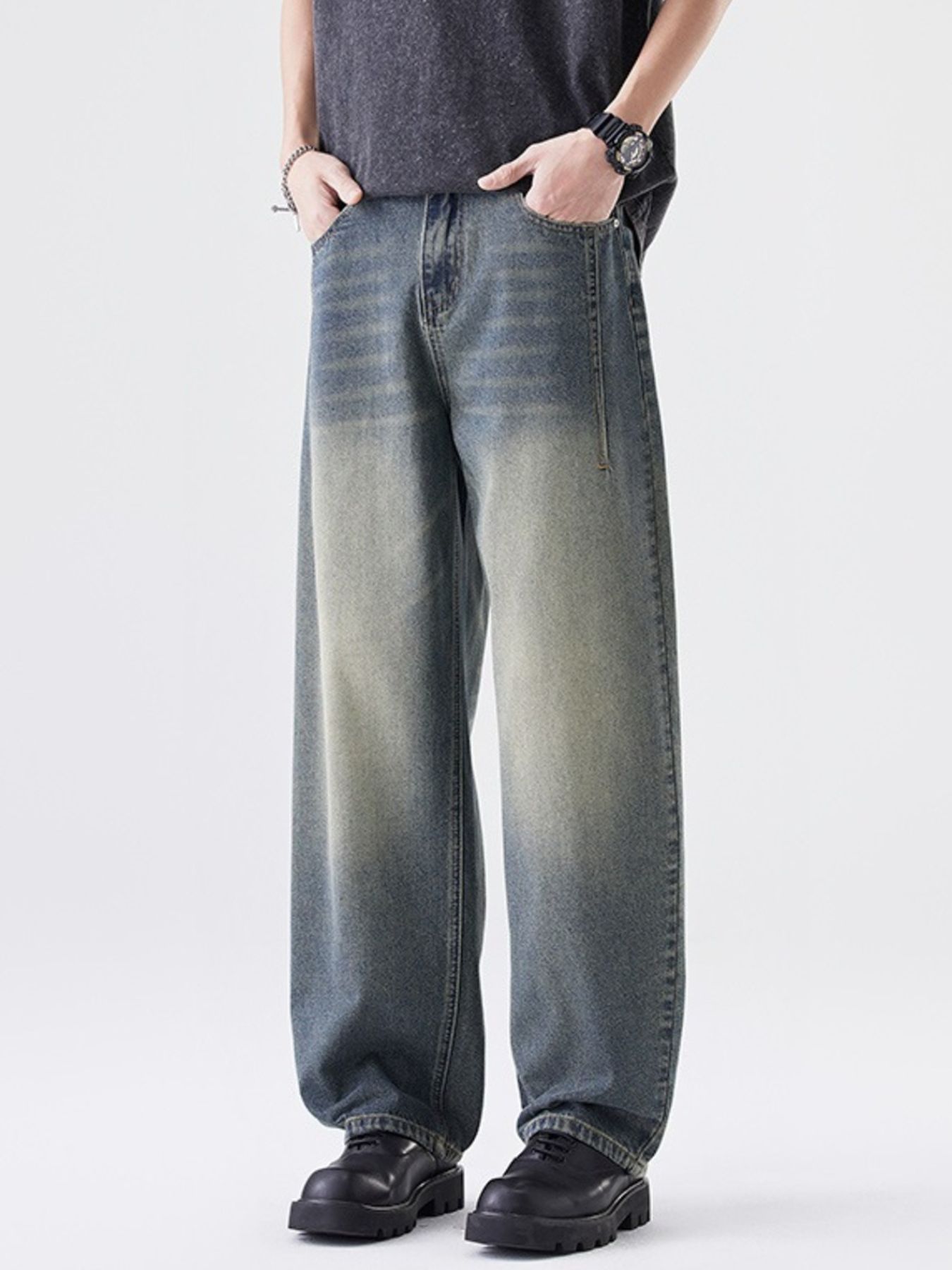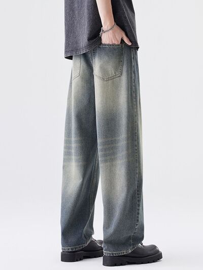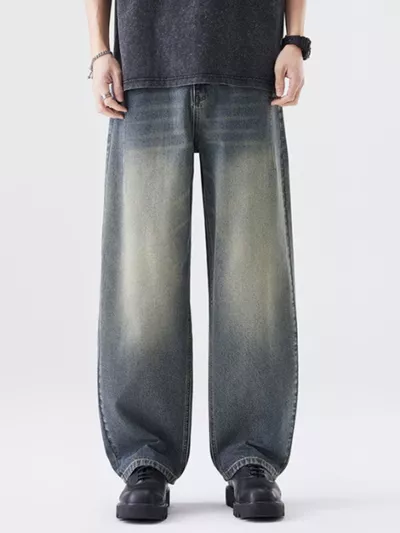 Men's Washed Wide Leg Relaxed Fit Jeans