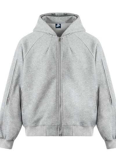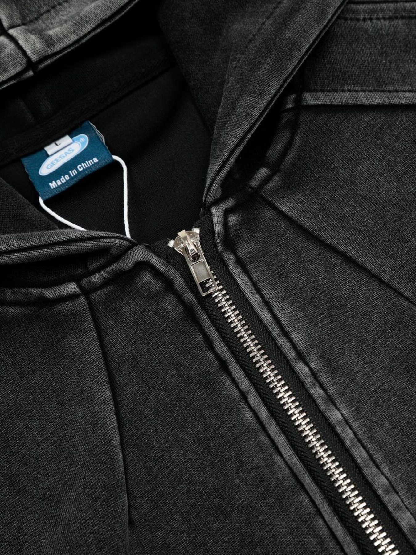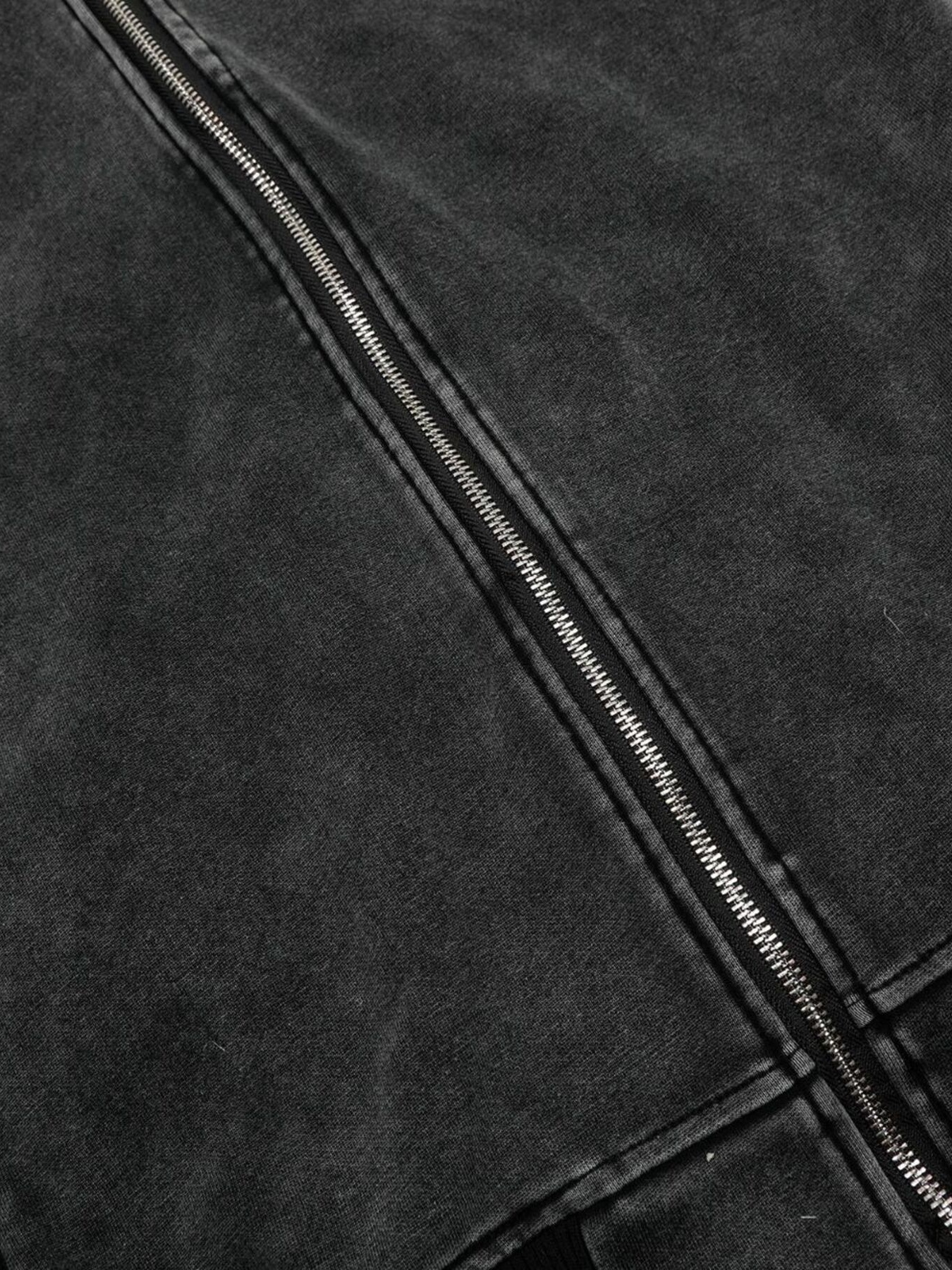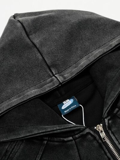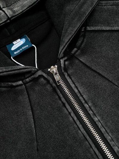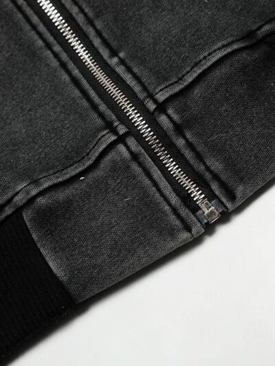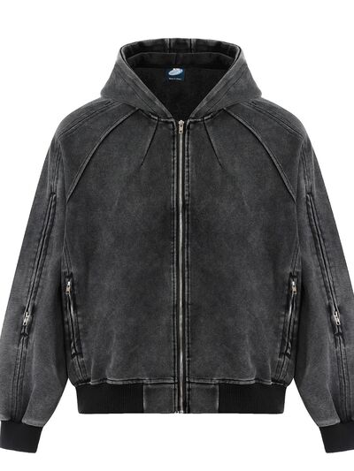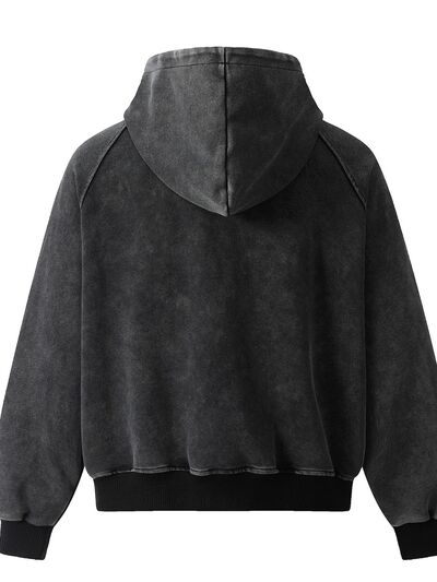 Men's Washed Zip Up Hoodie with Raglan Sleeves