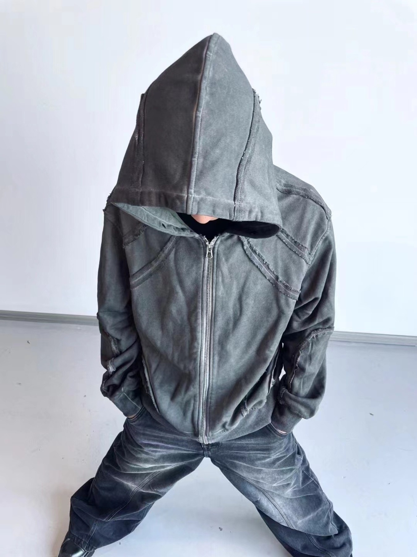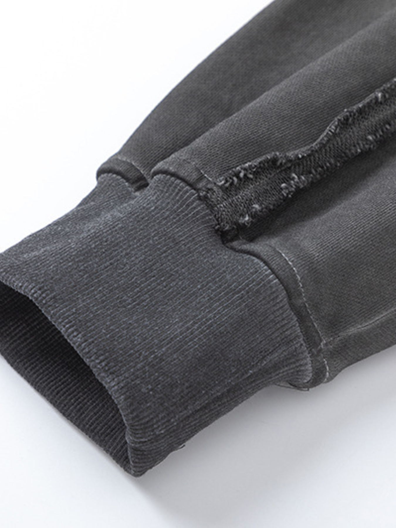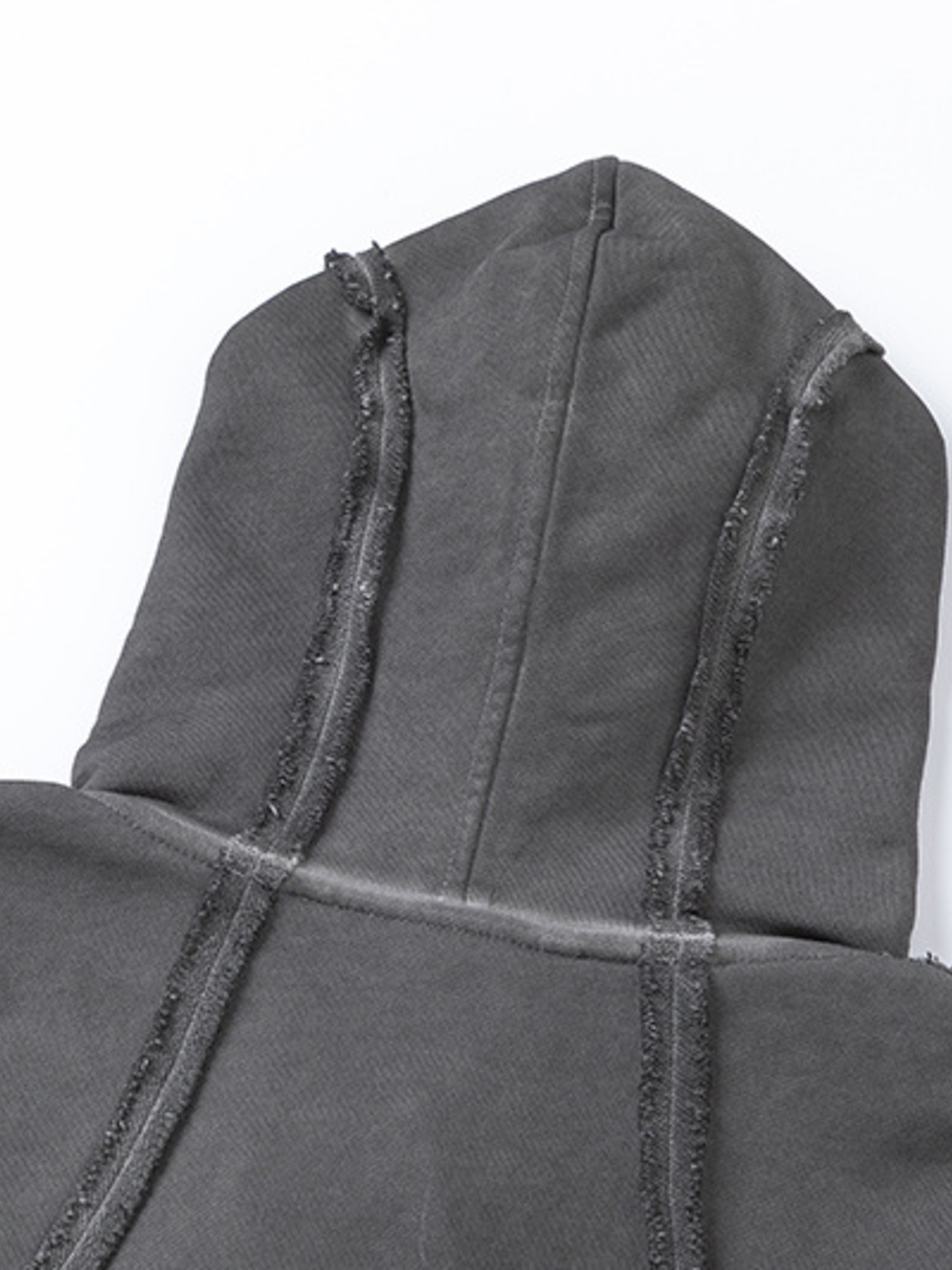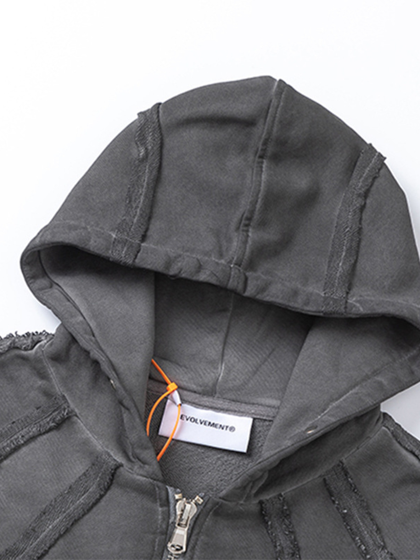 Men's Washed Zip-Up Hoodie with Raw Edge Details