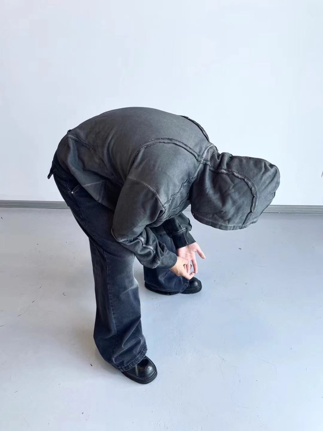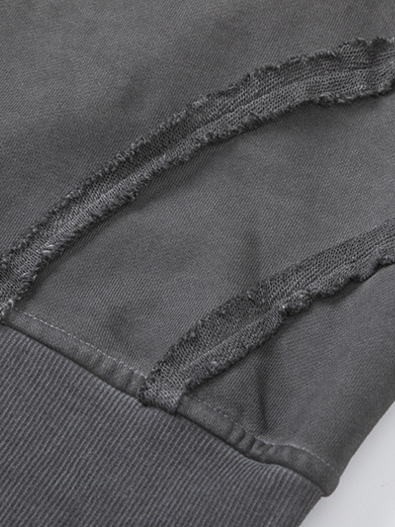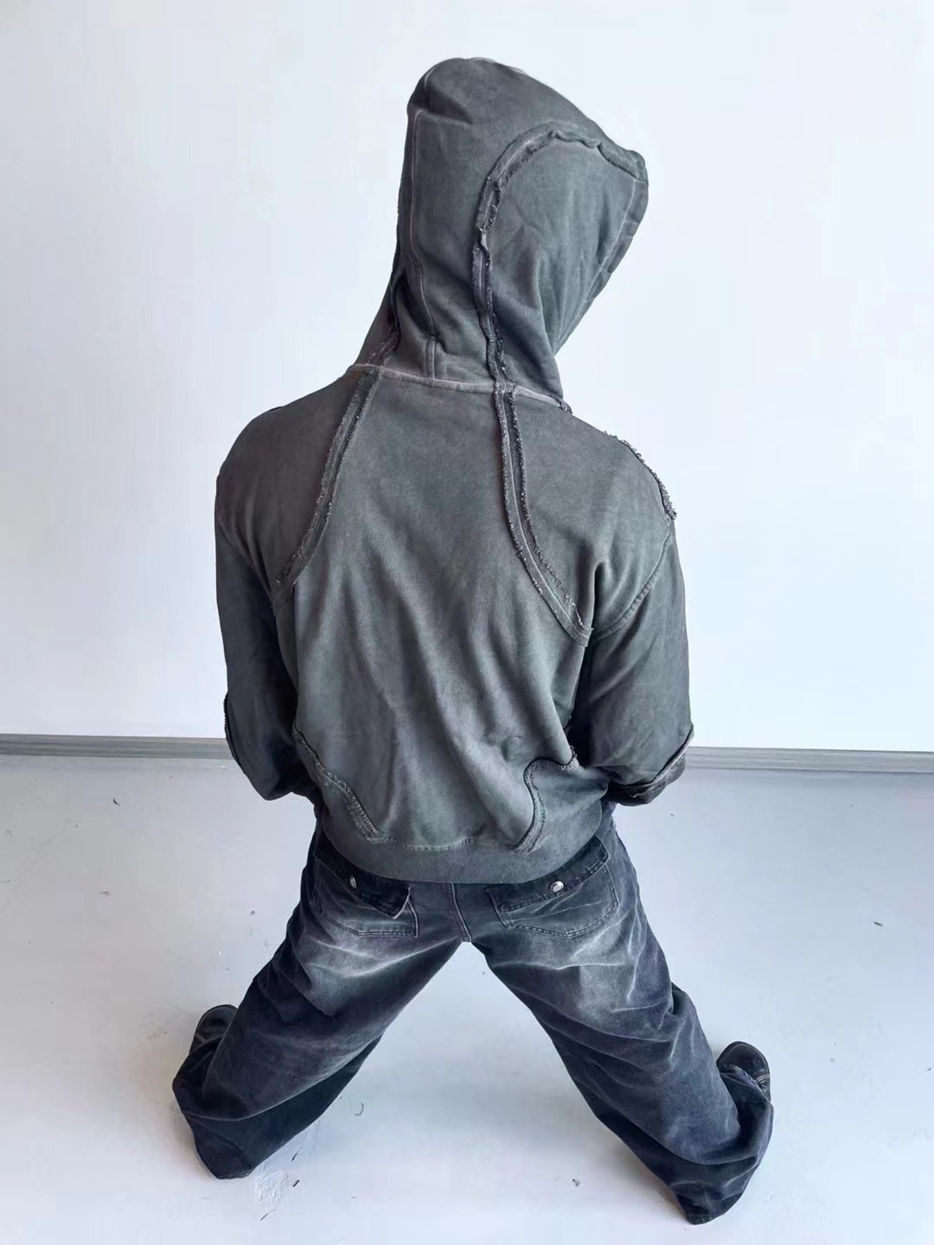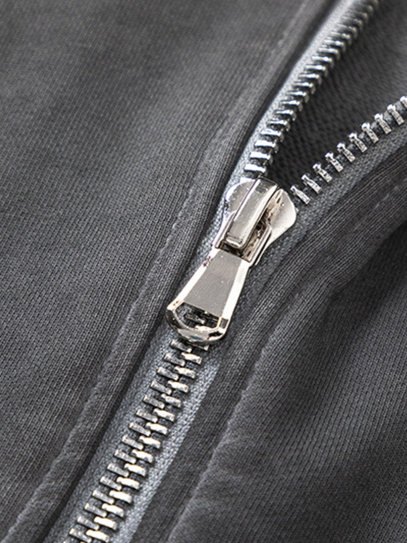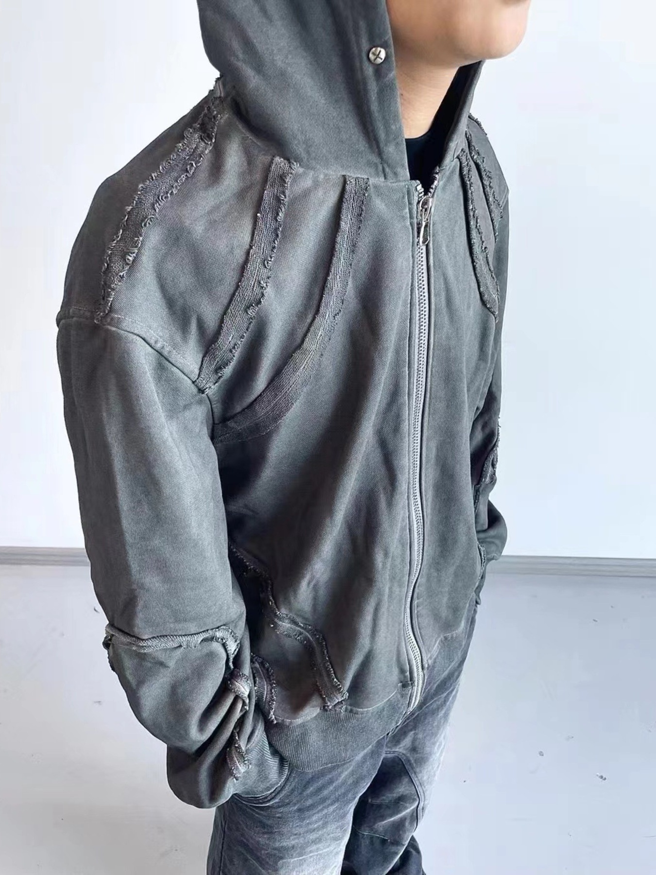 Men's Washed Zip-Up Hoodie with Raw Edge Details