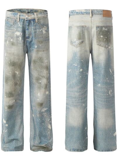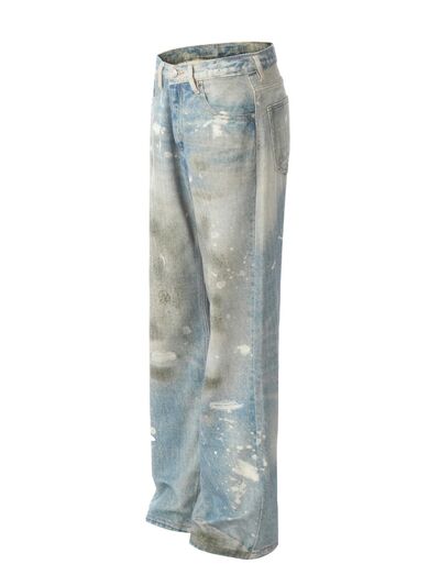 Men's Waste Soil Style Straight Leg Jeans