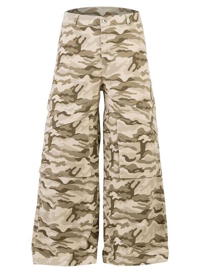 Men's Wide Leg Camo Print Cargo Pants