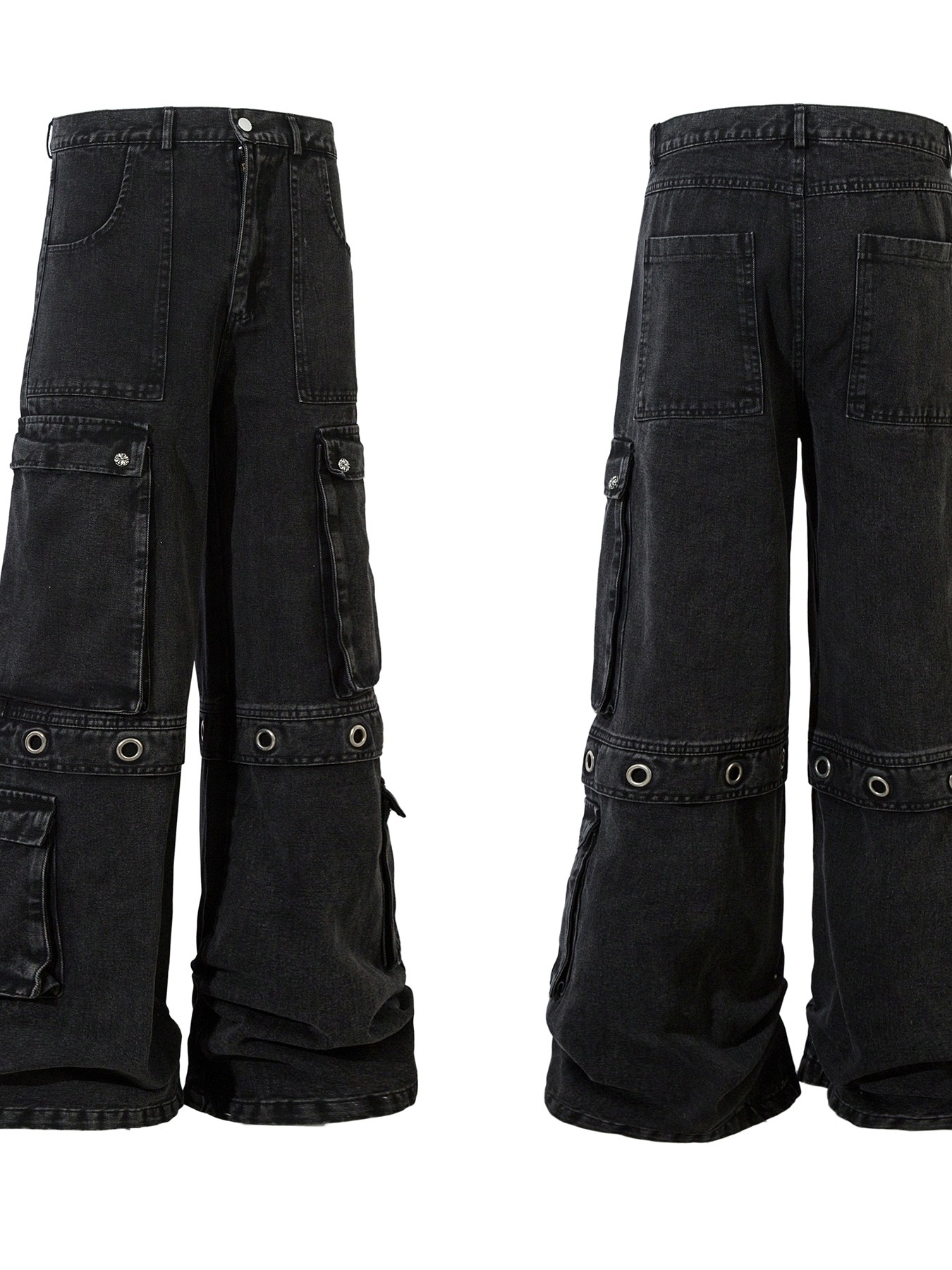 Men's Wide Leg Cargo Denim Jeans with Multi Pockets