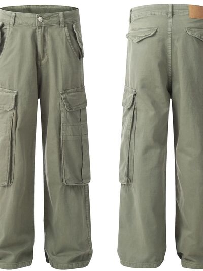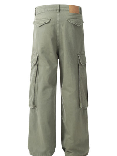 Men's Wide Leg Cargo Jeans with Multi Pockets
