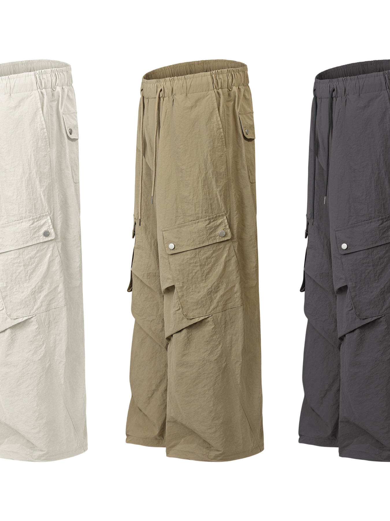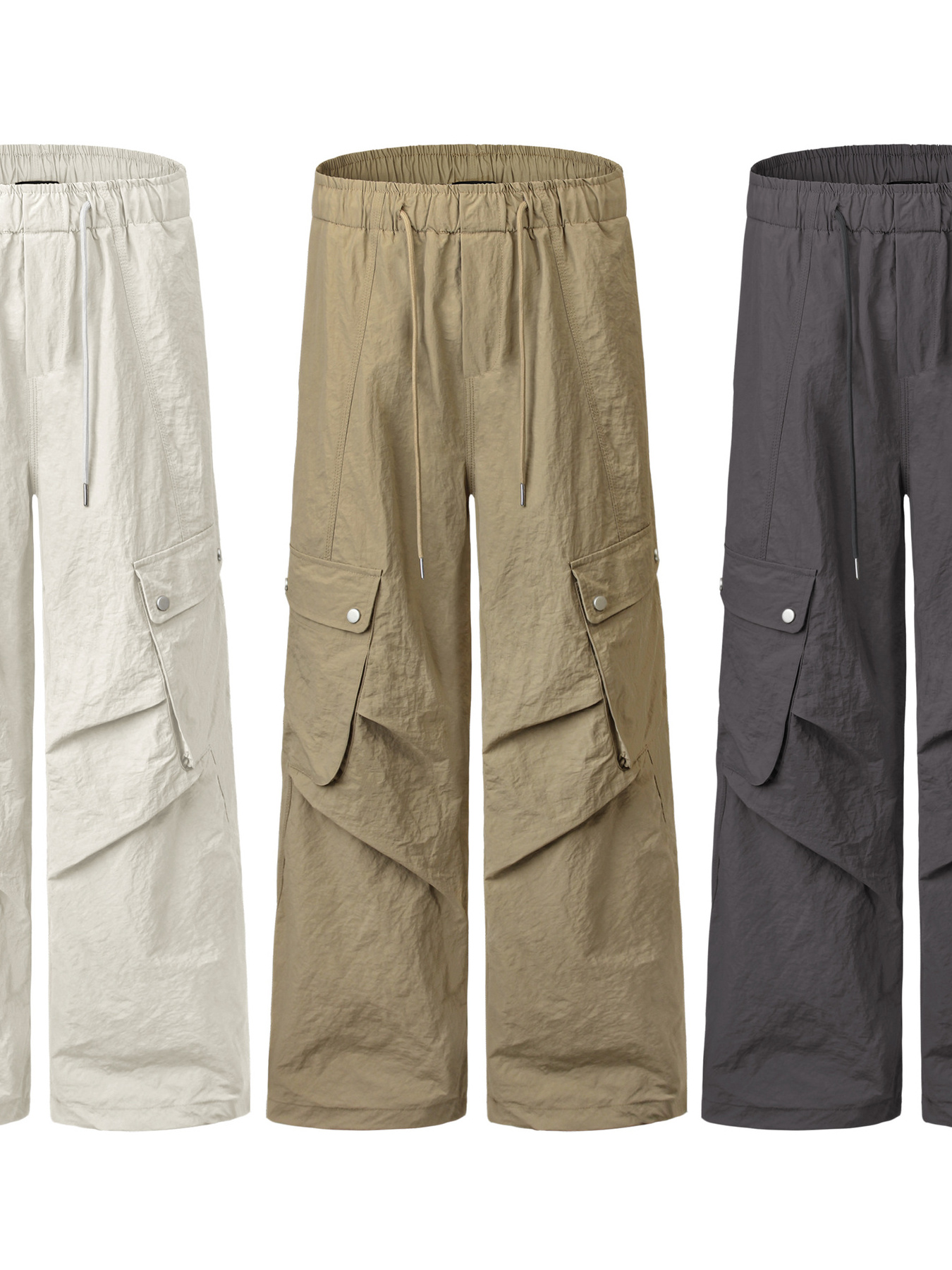 Men's Wide Leg Cargo Pants with Drawstring Waist