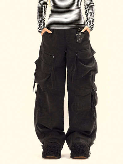 Men's Wide Leg Cargo Pants with Multiple Pockets