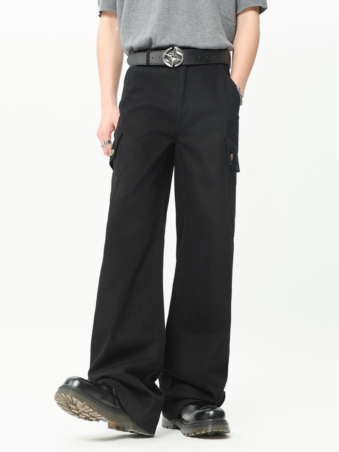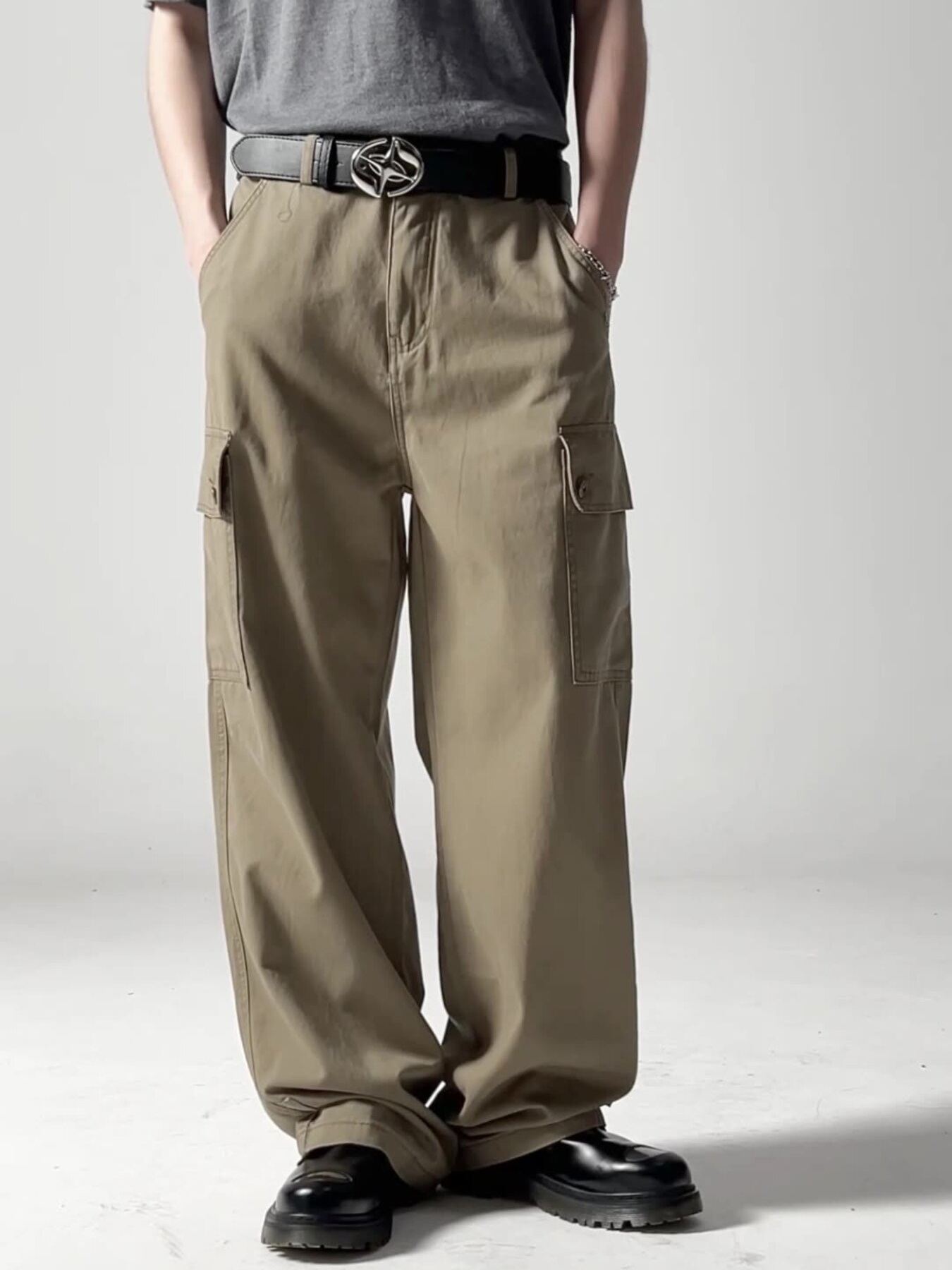 Men's Wide Leg Cargo Pants with Side Pockets