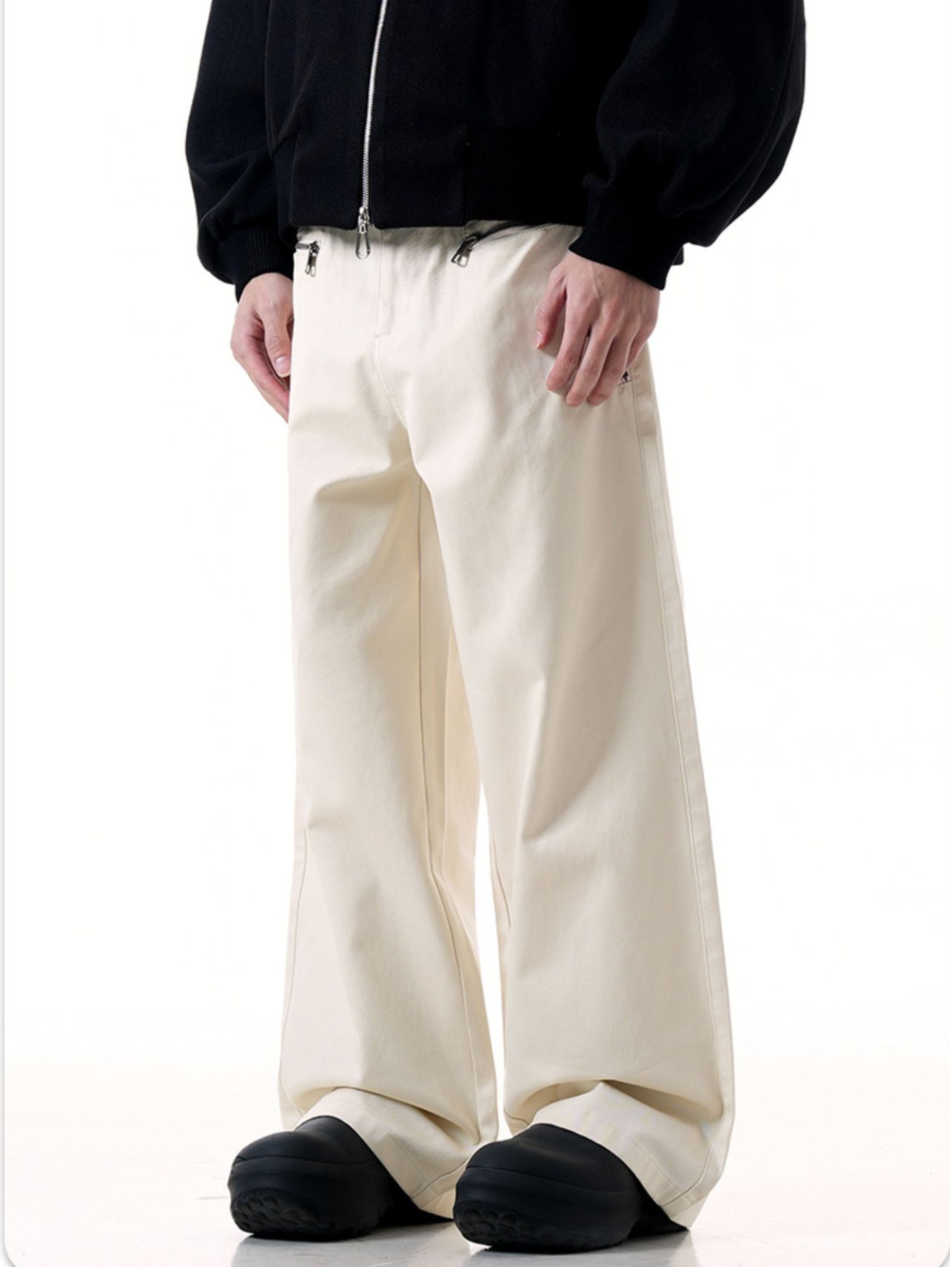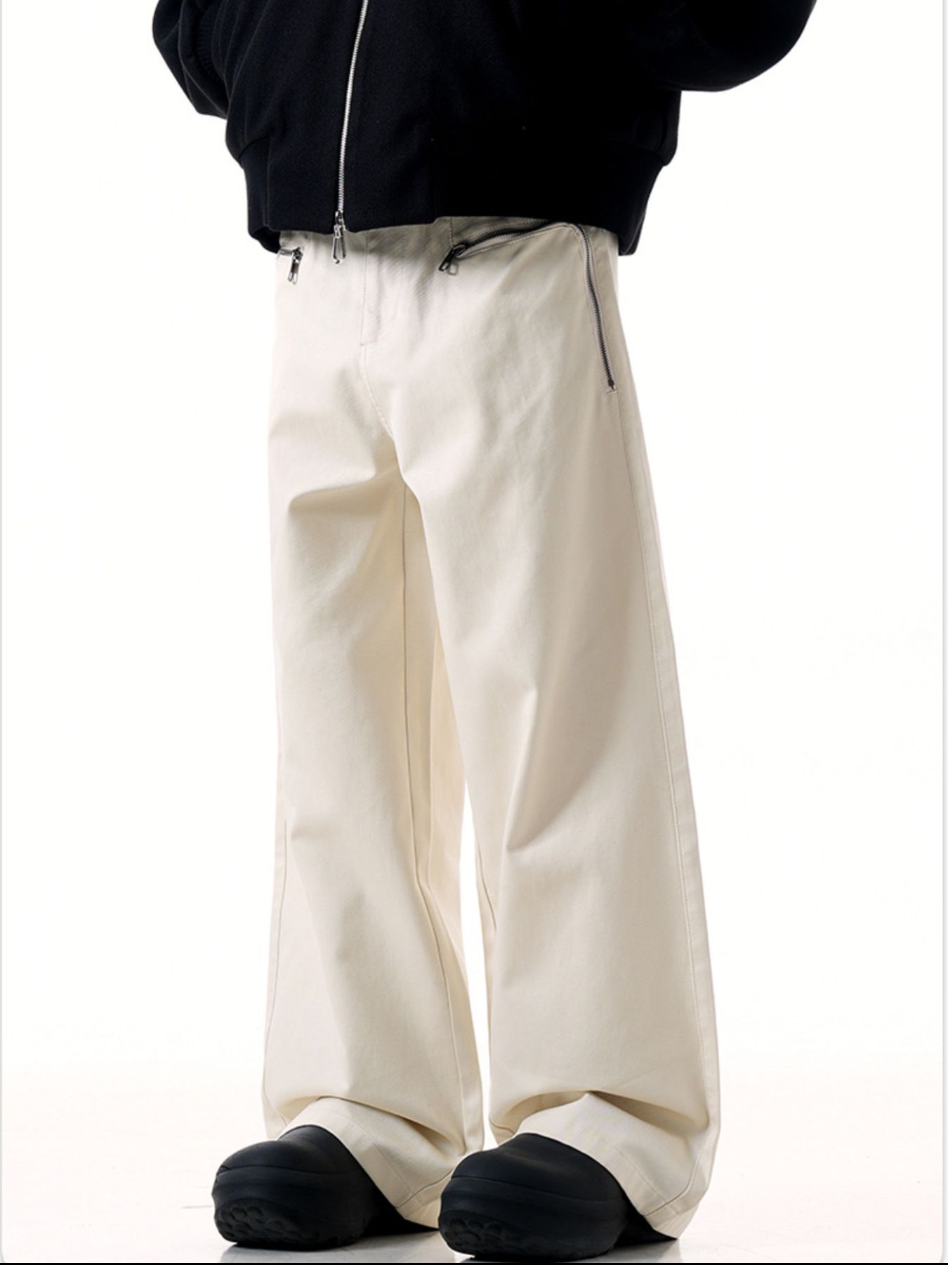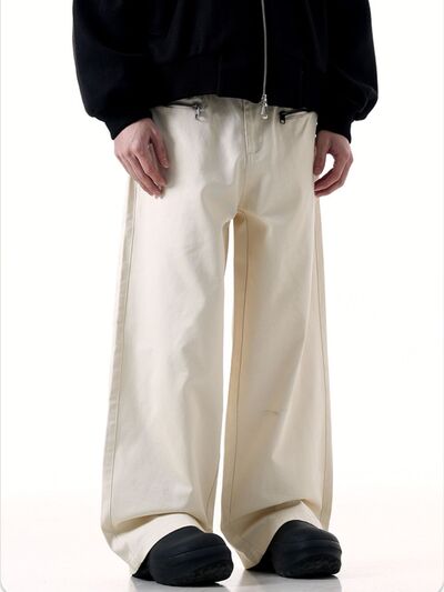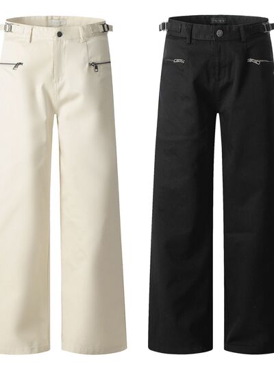 Men's Wide Leg Cargo Pants with Zipper Closure Pockets