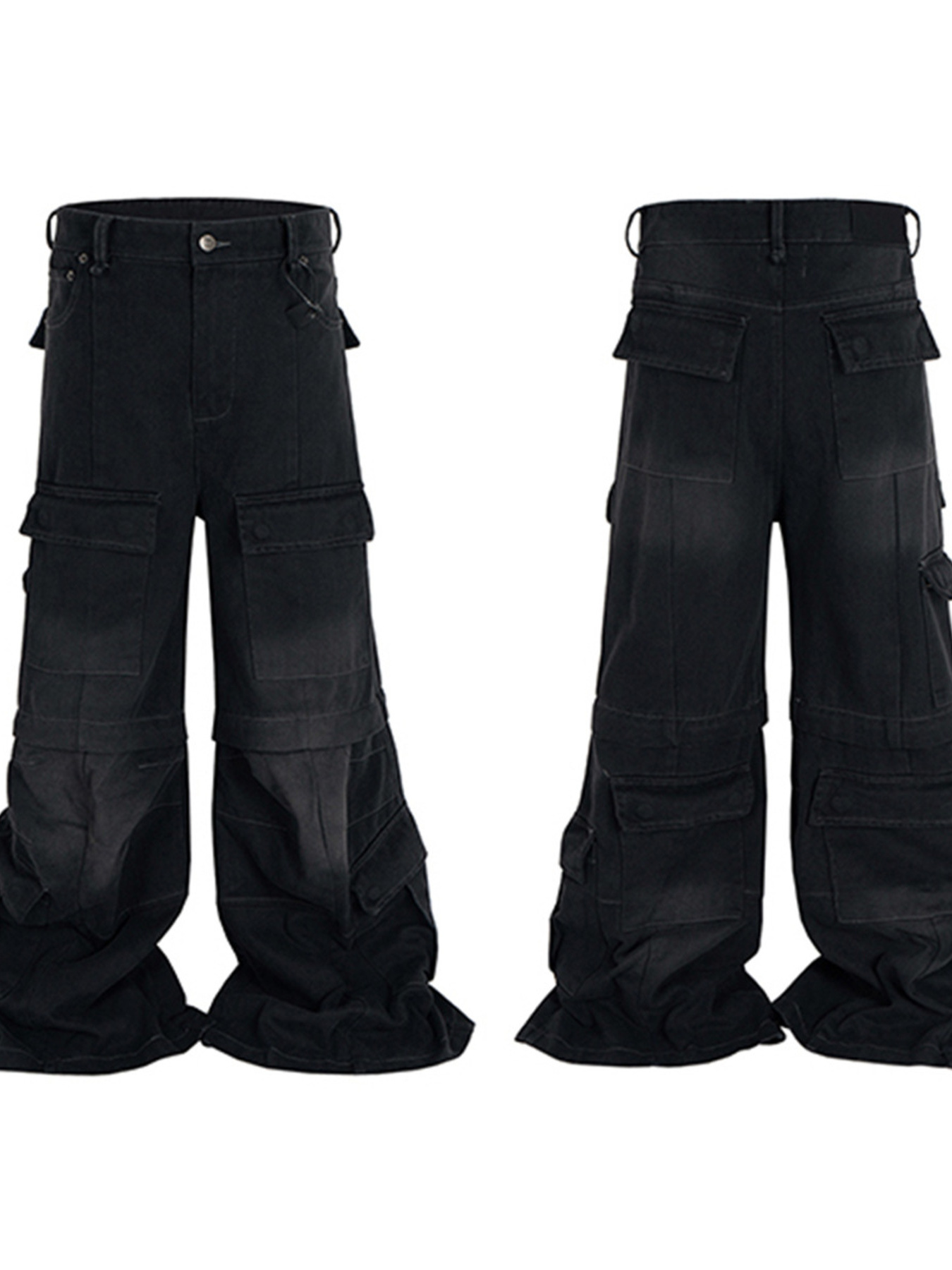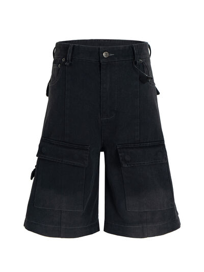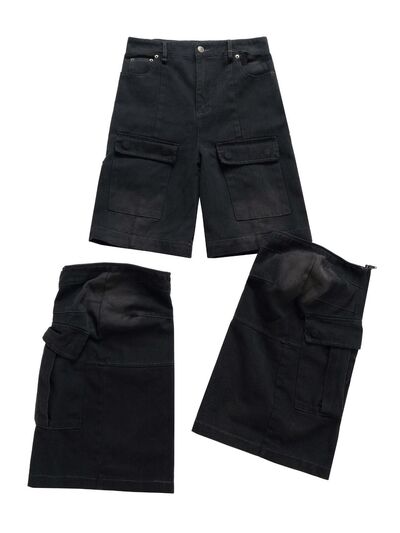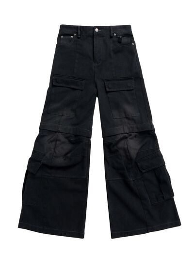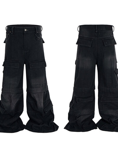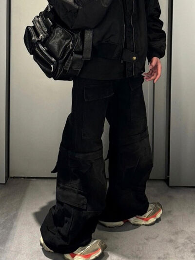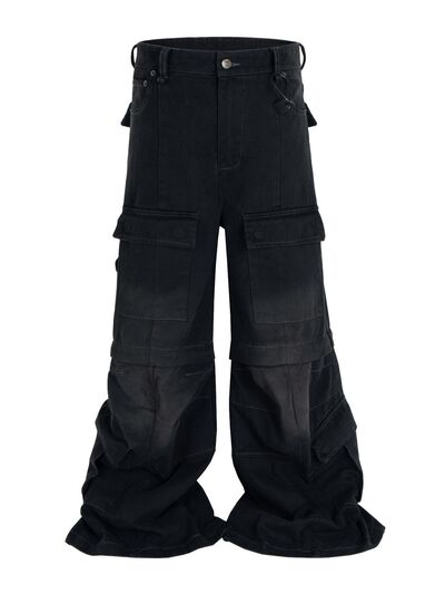 Men's Wide Leg Detachable Cargo Jeans with Multi-Pockets