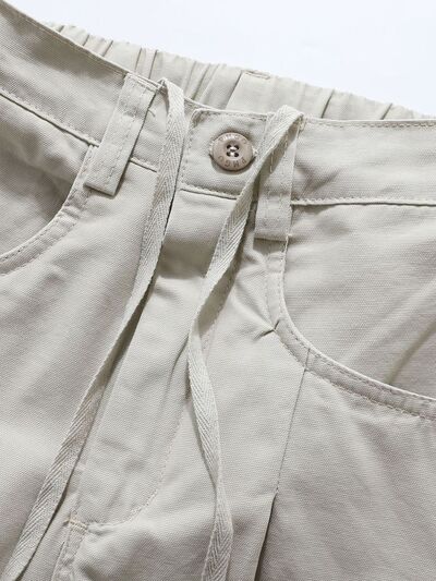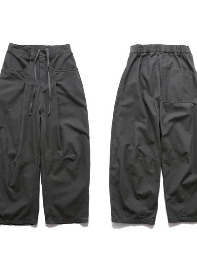 Men's Wide Leg Drawstring Cargo Curved Pants