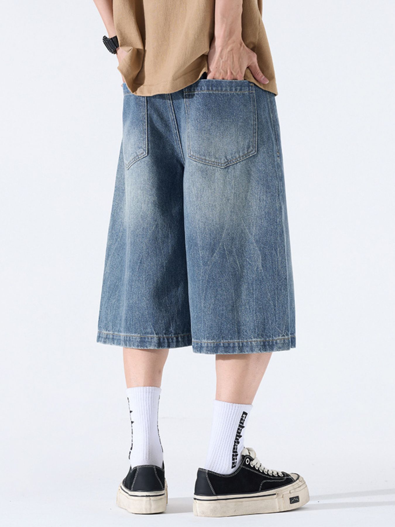 Men's Wide Leg Relaxed Fit Demin Shorts