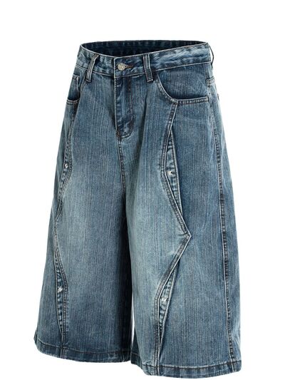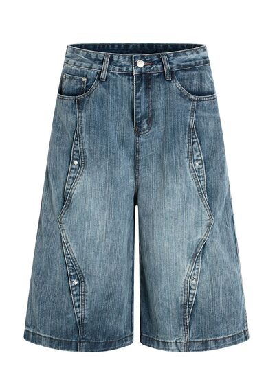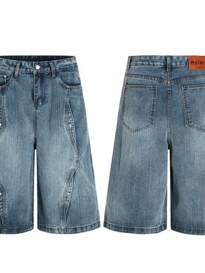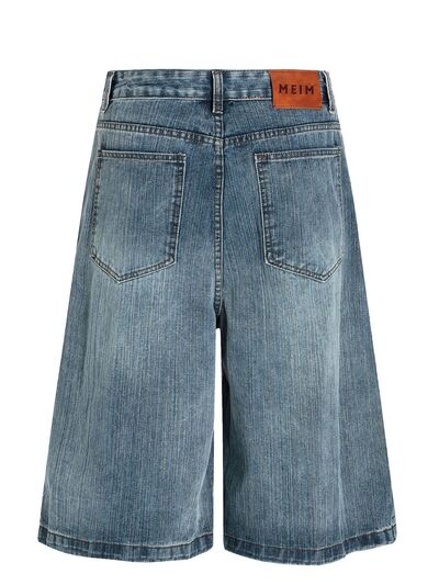 Men's Wide Leg Vintage Washed Denim Shorts