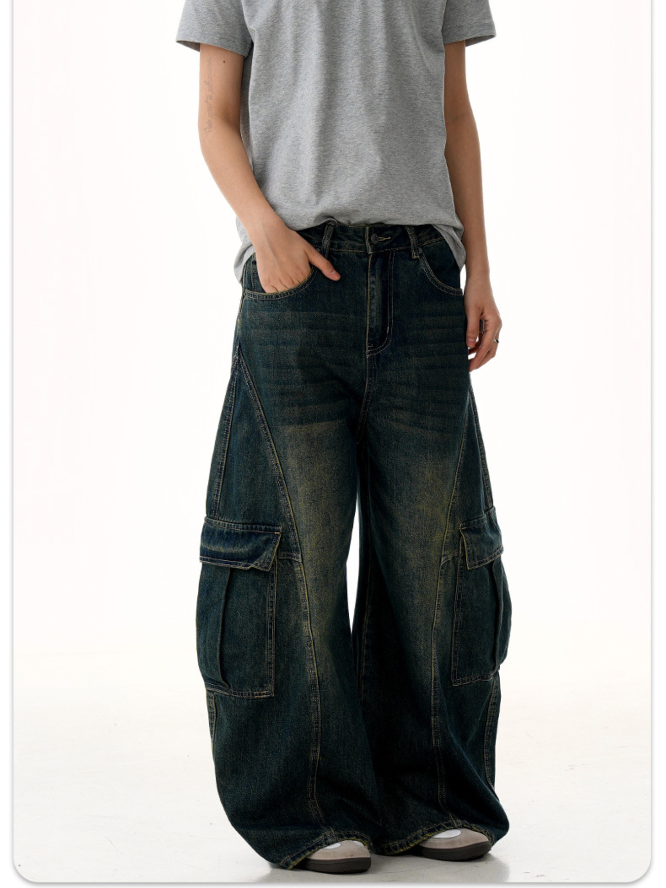 Men's Wide Leg Wash Cargo Jeans