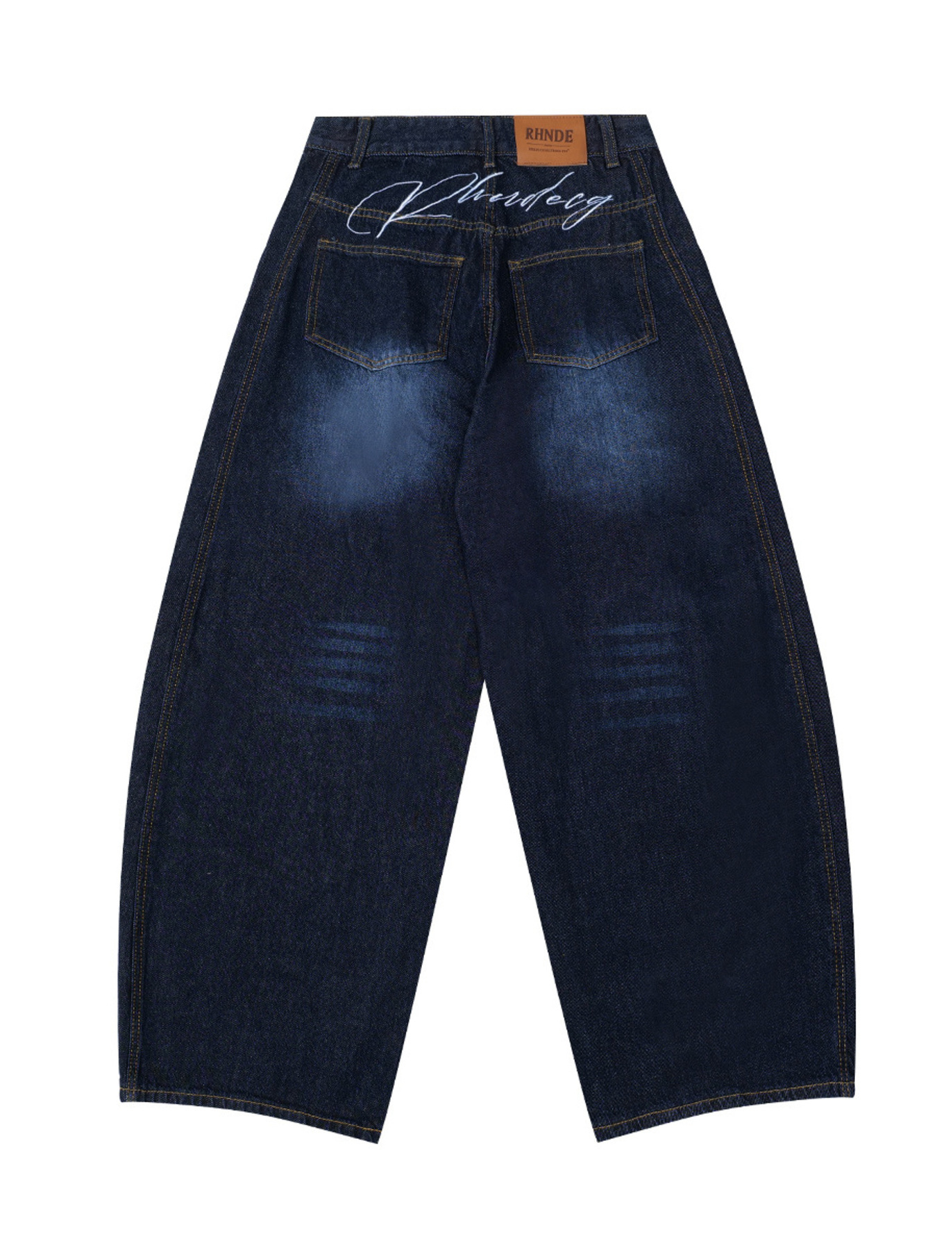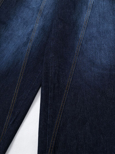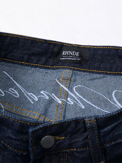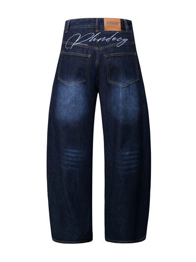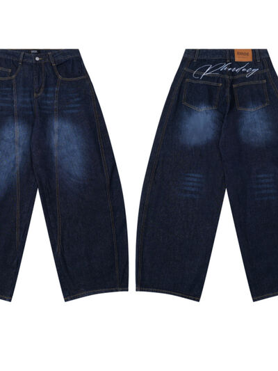 Men's Wide Leg Wash Denim Jeans with Signature Detail