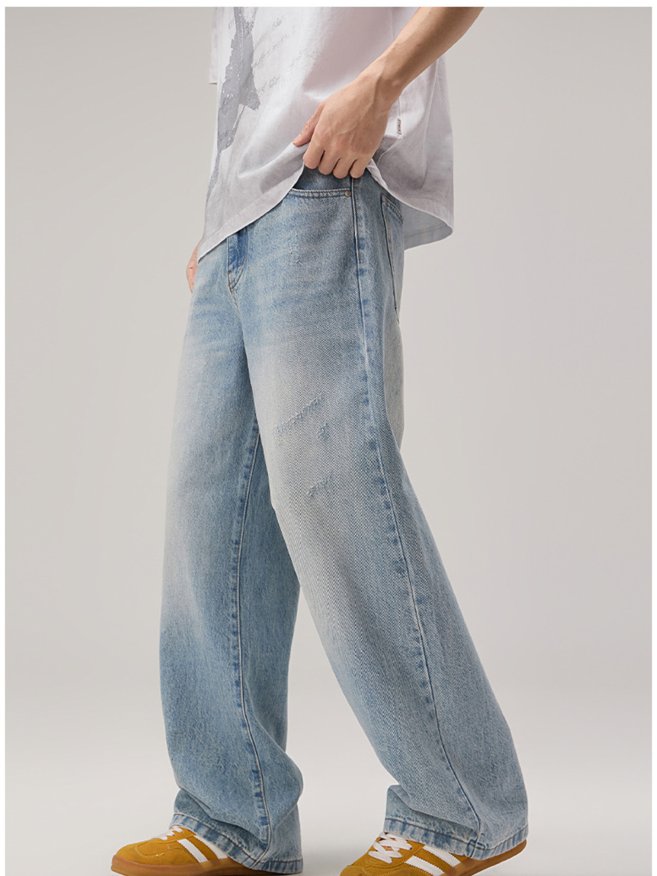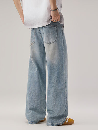 Men's Wide Leg Wash Jeans