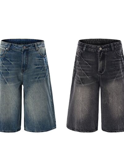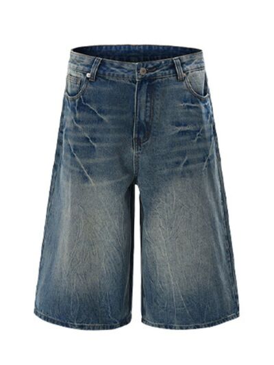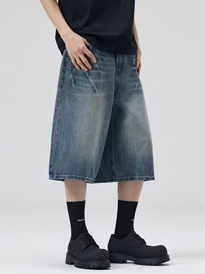 Men's Wide Leg Washed Denim Shorts