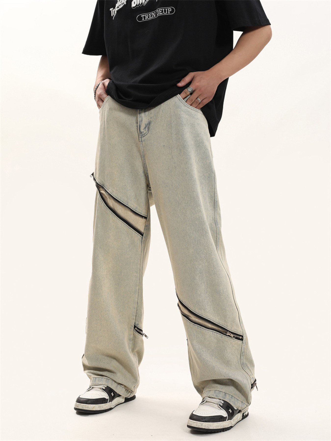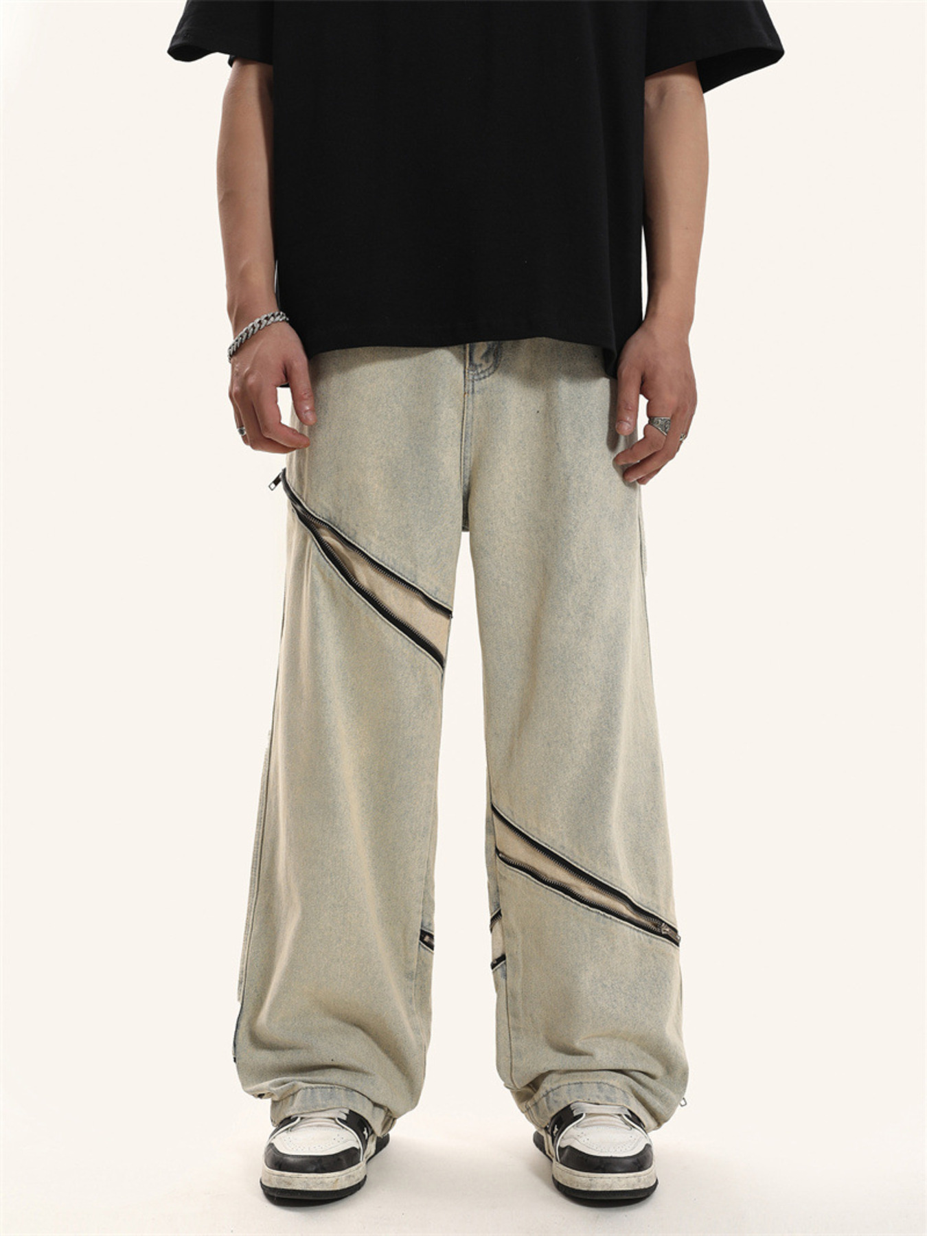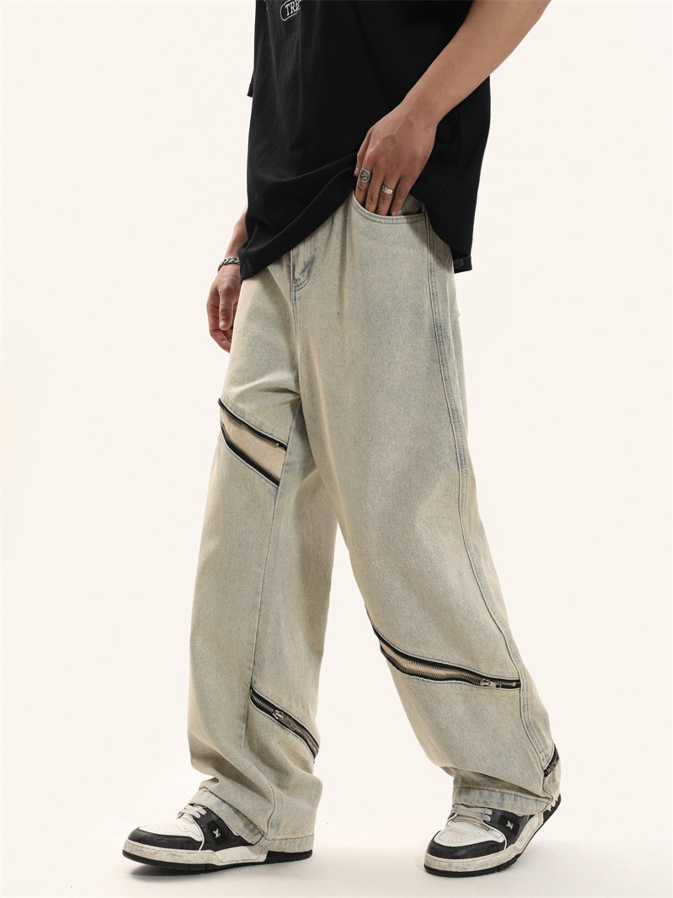 Men's Zip Detail Loose Fit Jeans