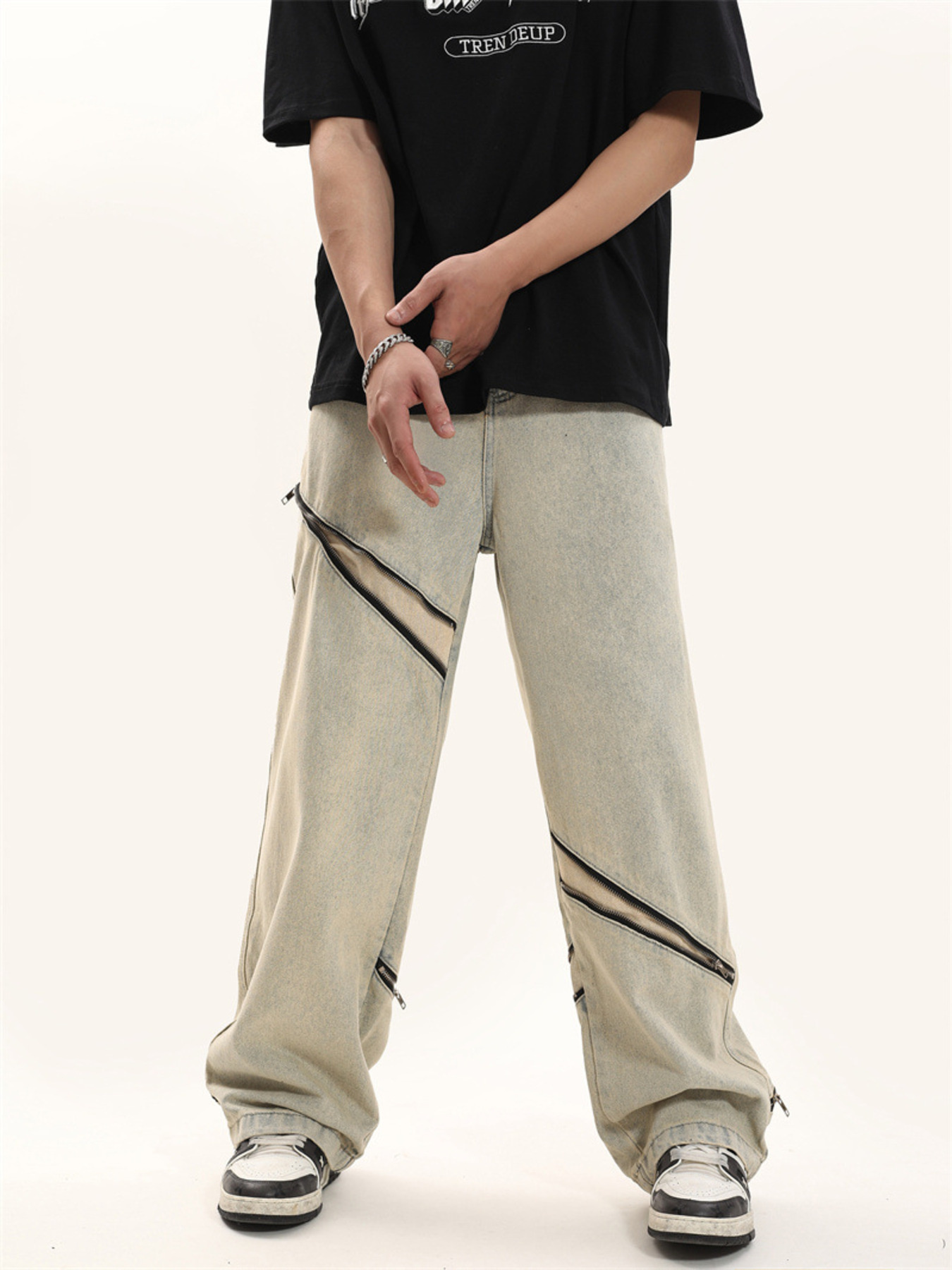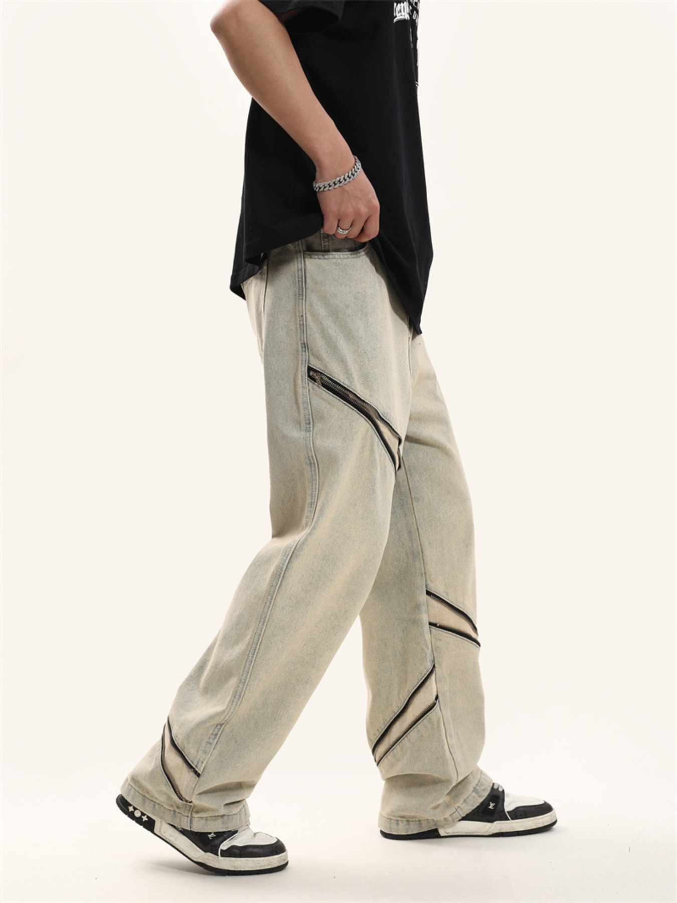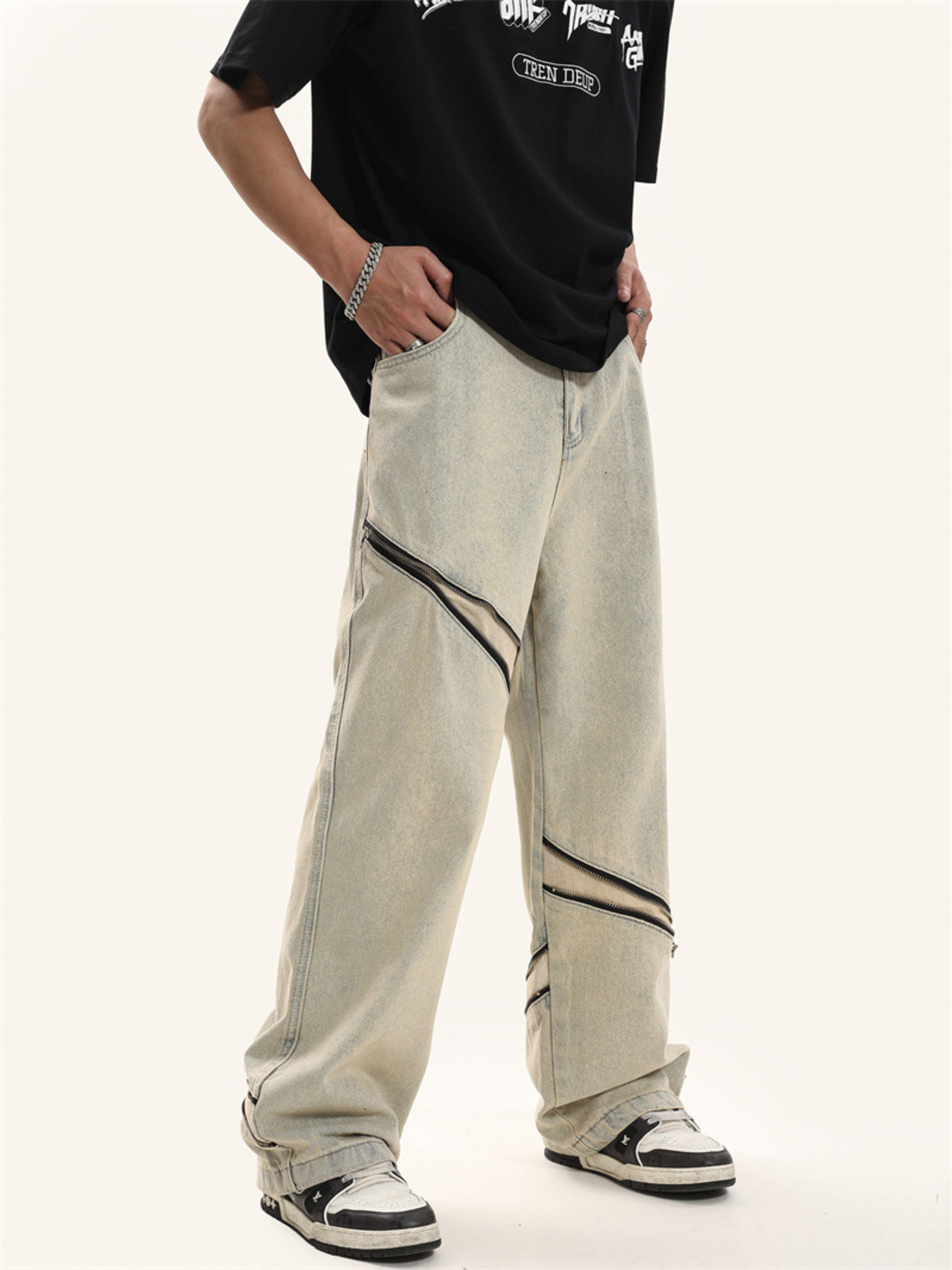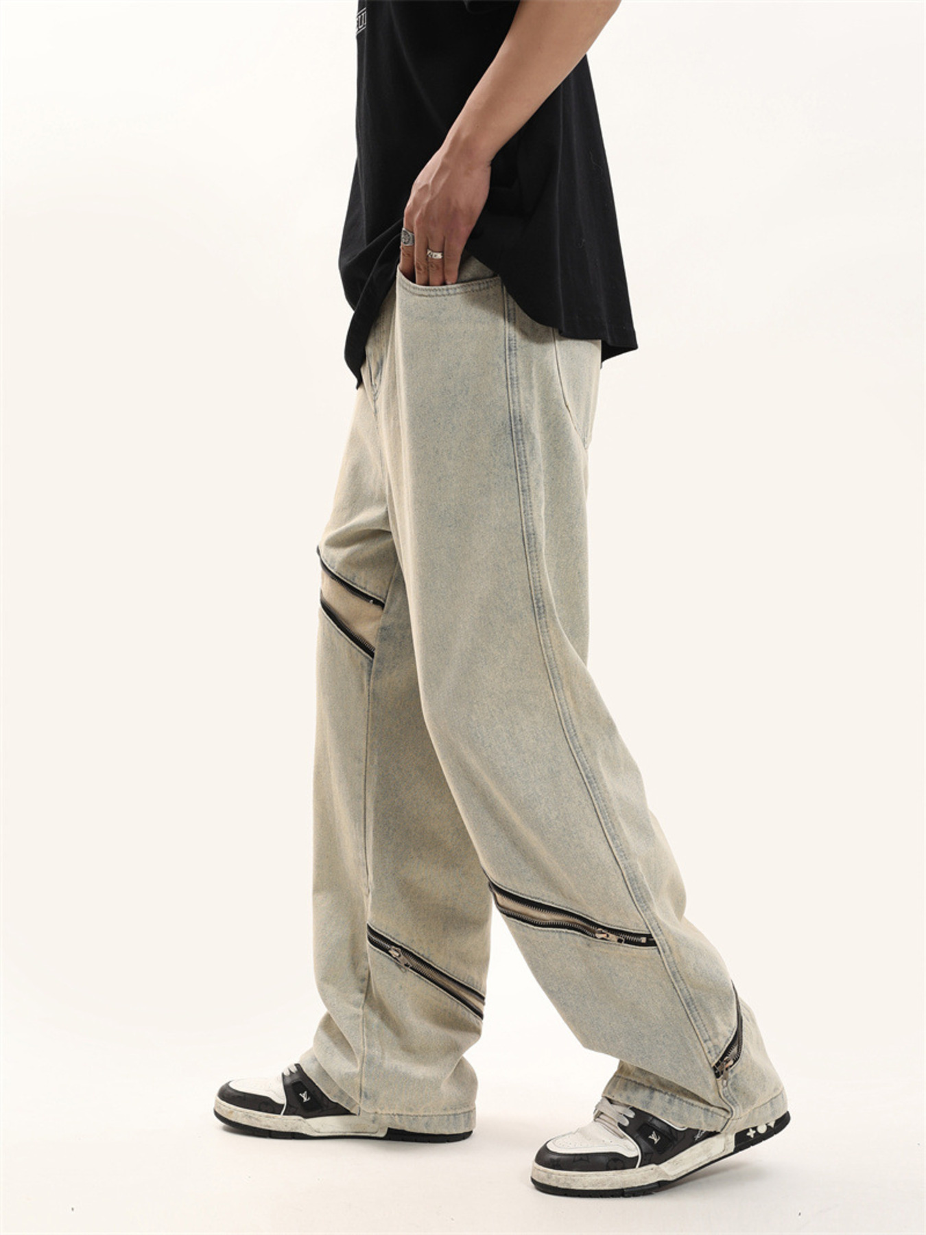 Men's Zip Detail Loose Fit Jeans
