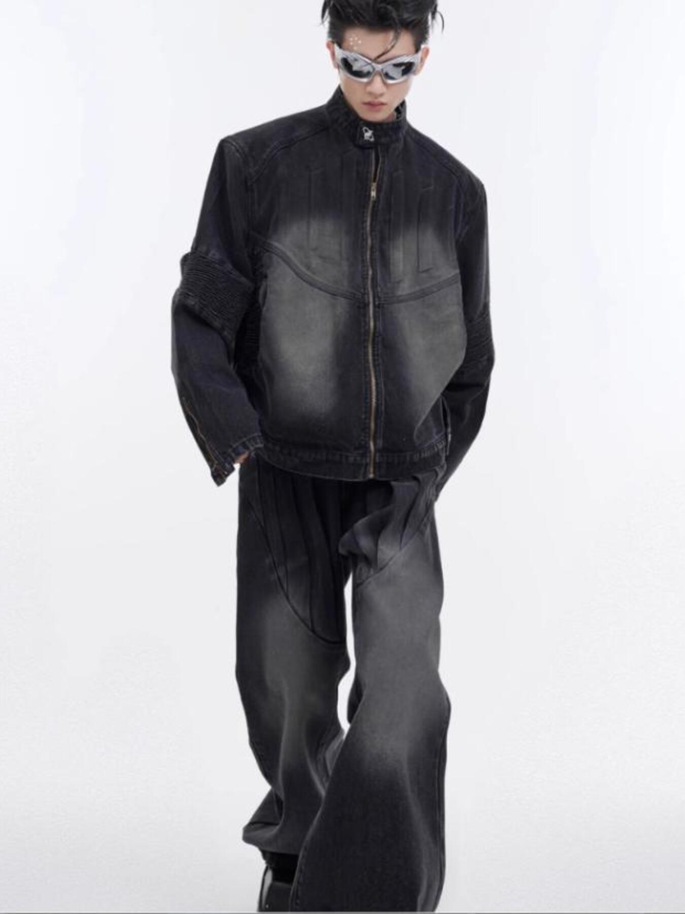 Men's Zip Up Long Sleeve Denim Jacket
