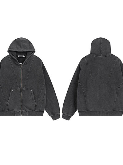 Men's Zip Up Washed Oversized Hoodie
