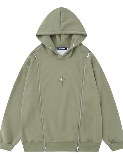 Men's Zipper Details Oversized Relaxed Fit Hoodie
