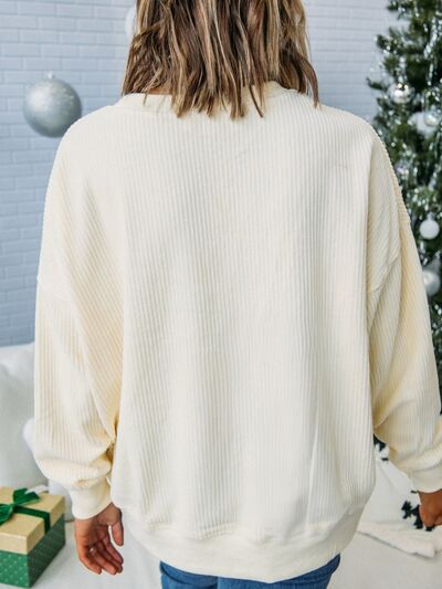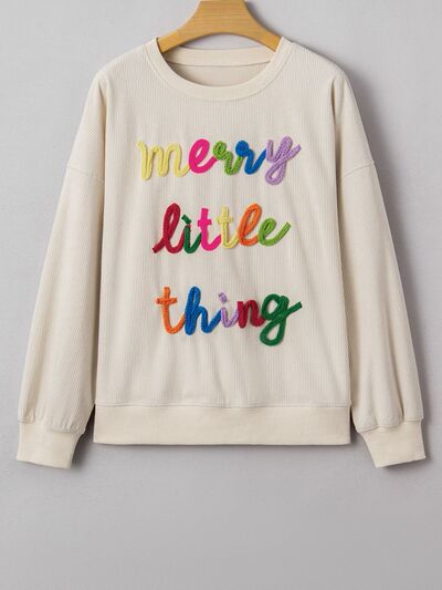 Merry Little Thing Corded Letter Graphic Ribbed Sweatshirt