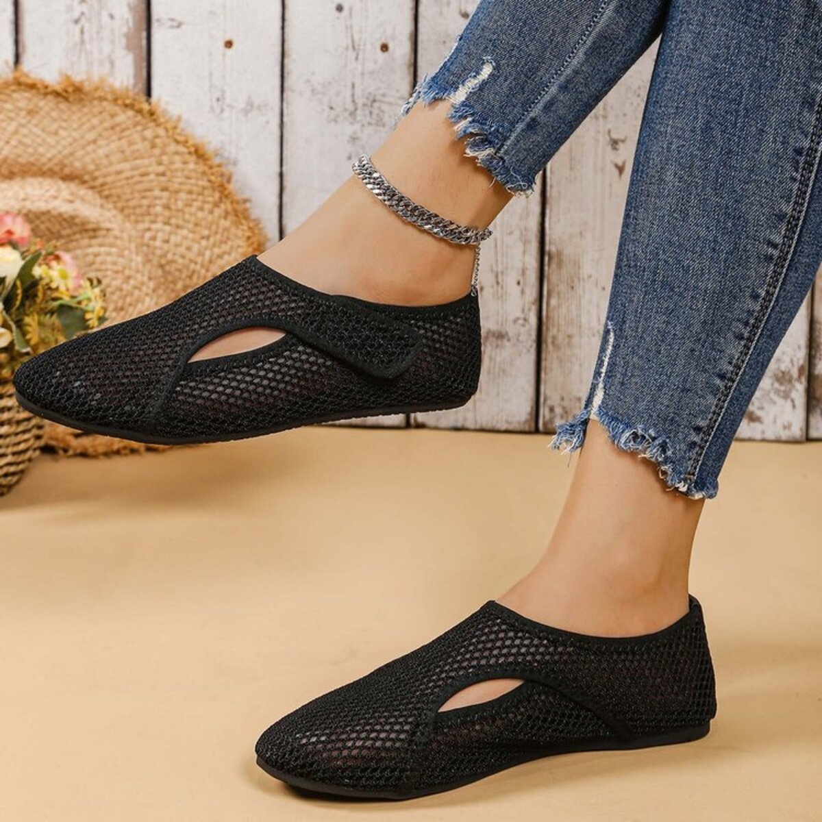 Mesh Round Toe Slip-Ons