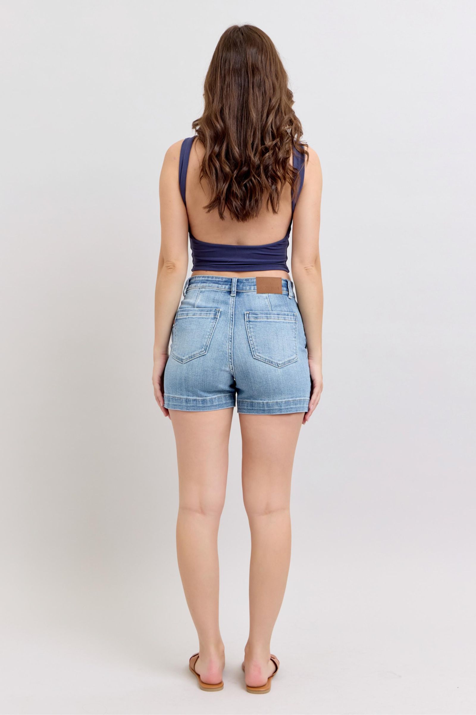 Mid Rise Denim Shorts