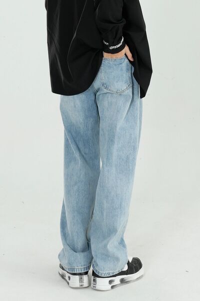 Mid Rise Wide Straight Jeans with Pockets