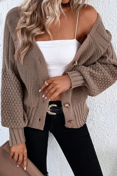 Mixed Texture Knit Button V Neck Sweater Cardigan