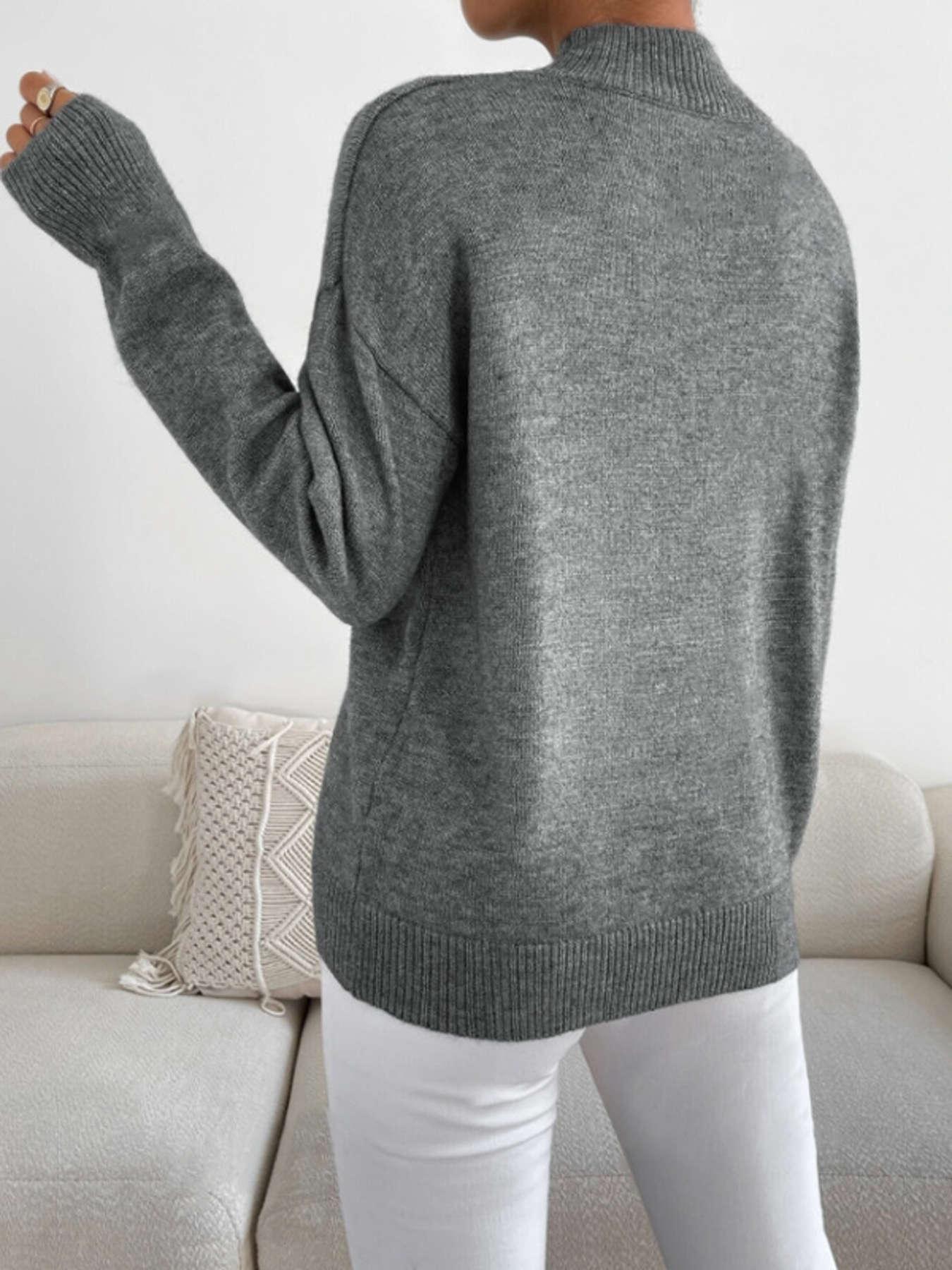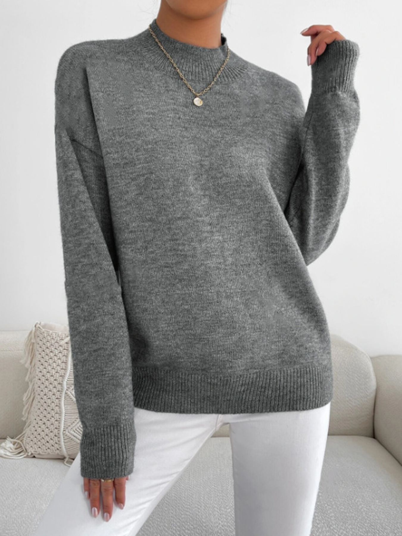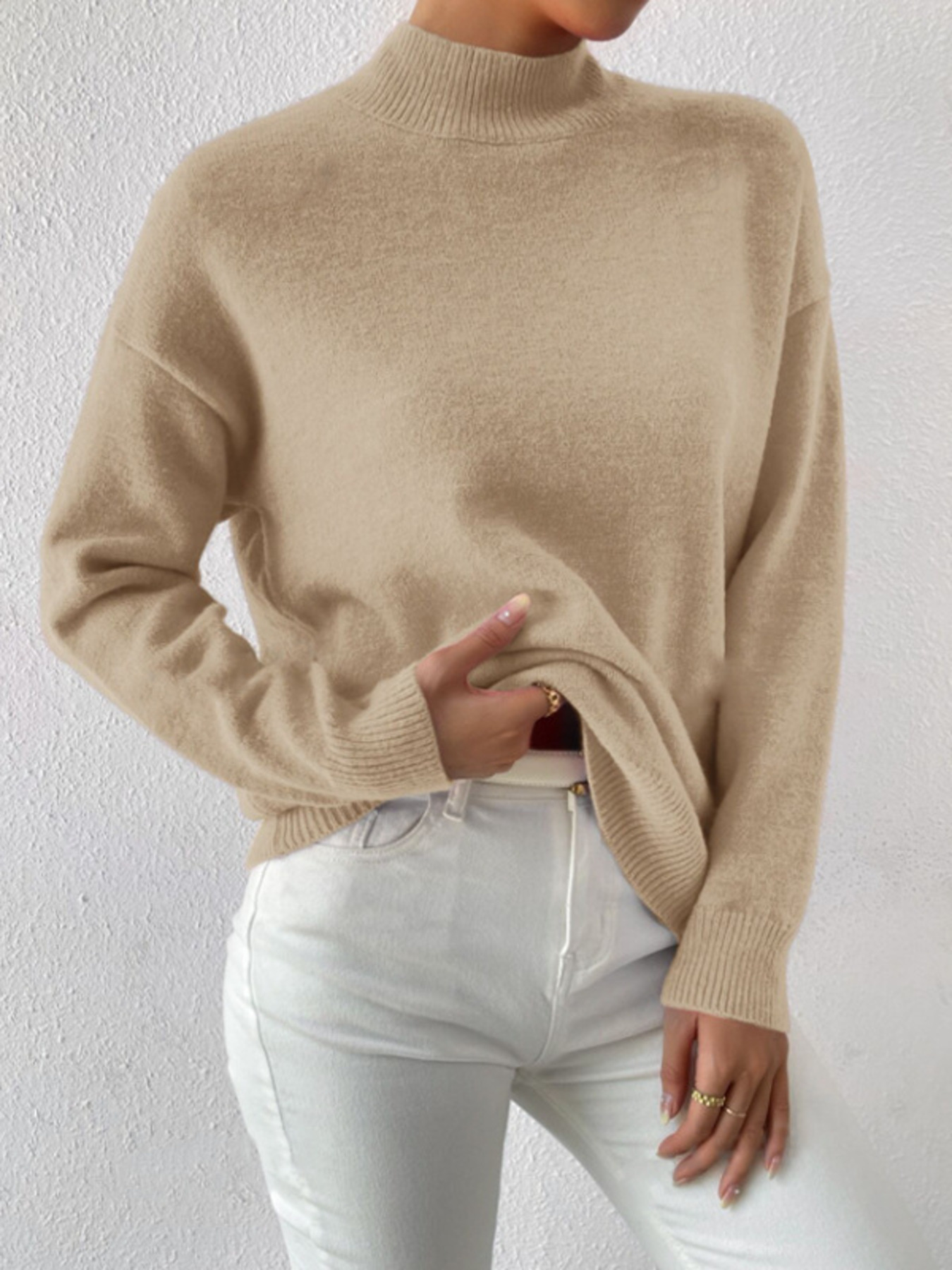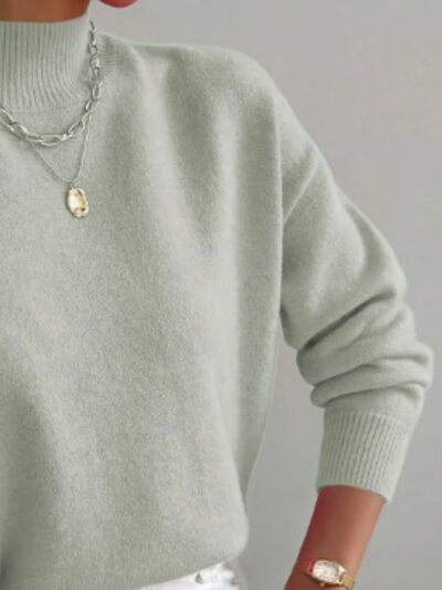 Mock Neck Dropped Shoulder Sweater