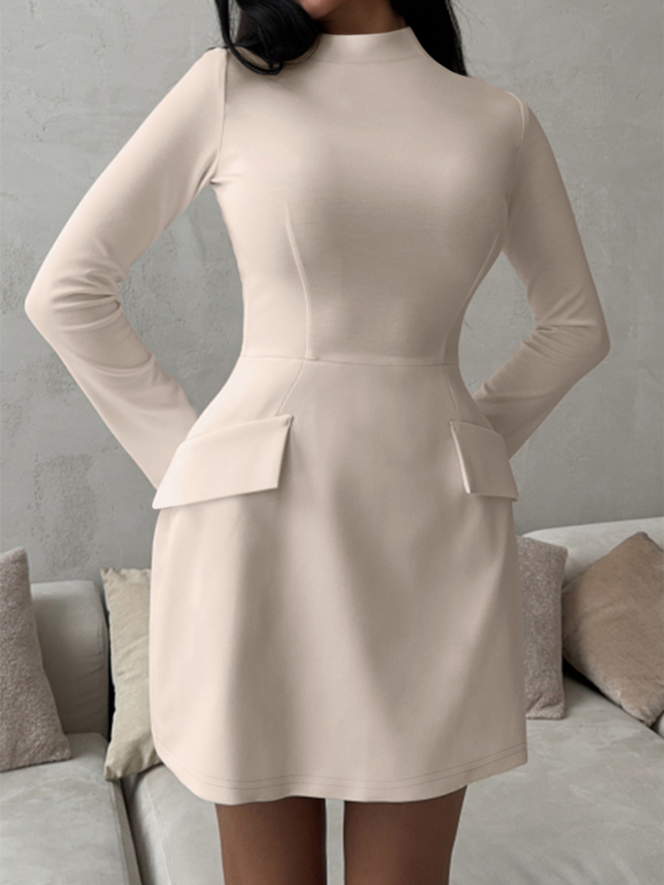 Mock Neck Long Sleeve Bodycon Dress