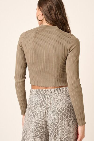 Mock Neck Long Sleeve Crop Knit Top