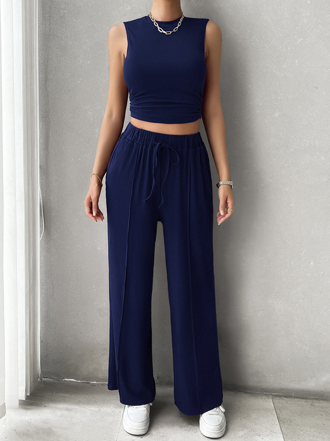 Mock Neck Sleeveless Top and Drawstring Pants Set