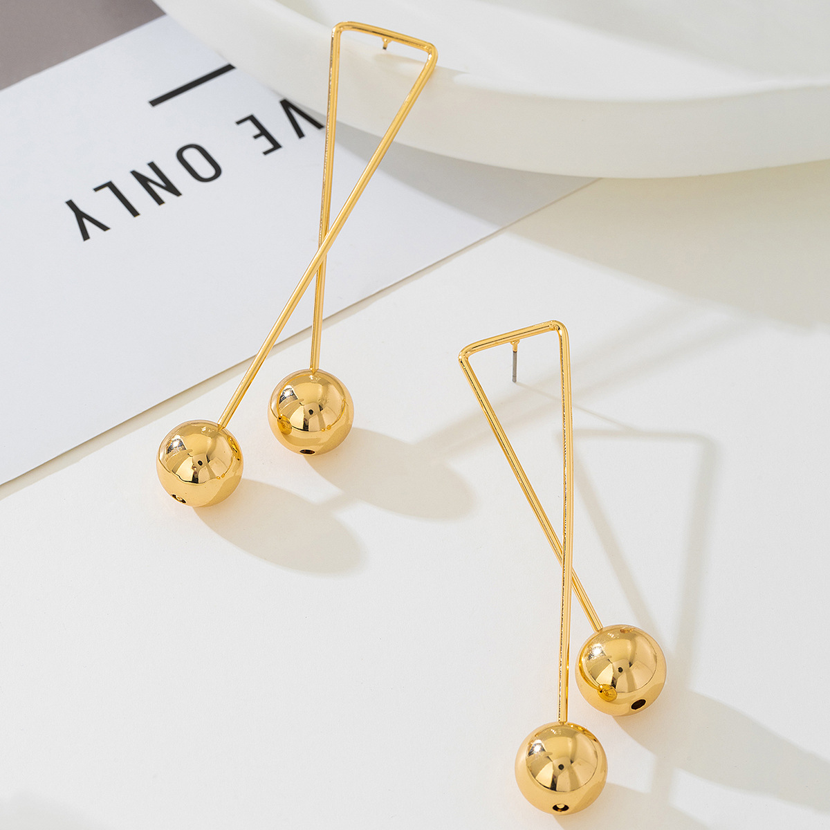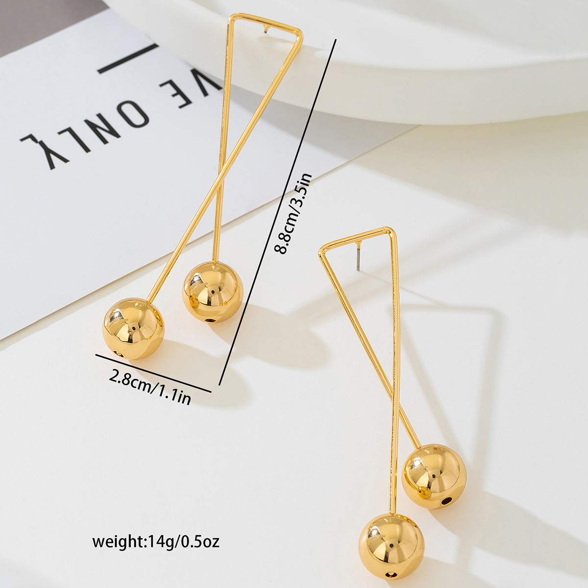Modern Geometric Triangle Gold Ball Drop Earrings